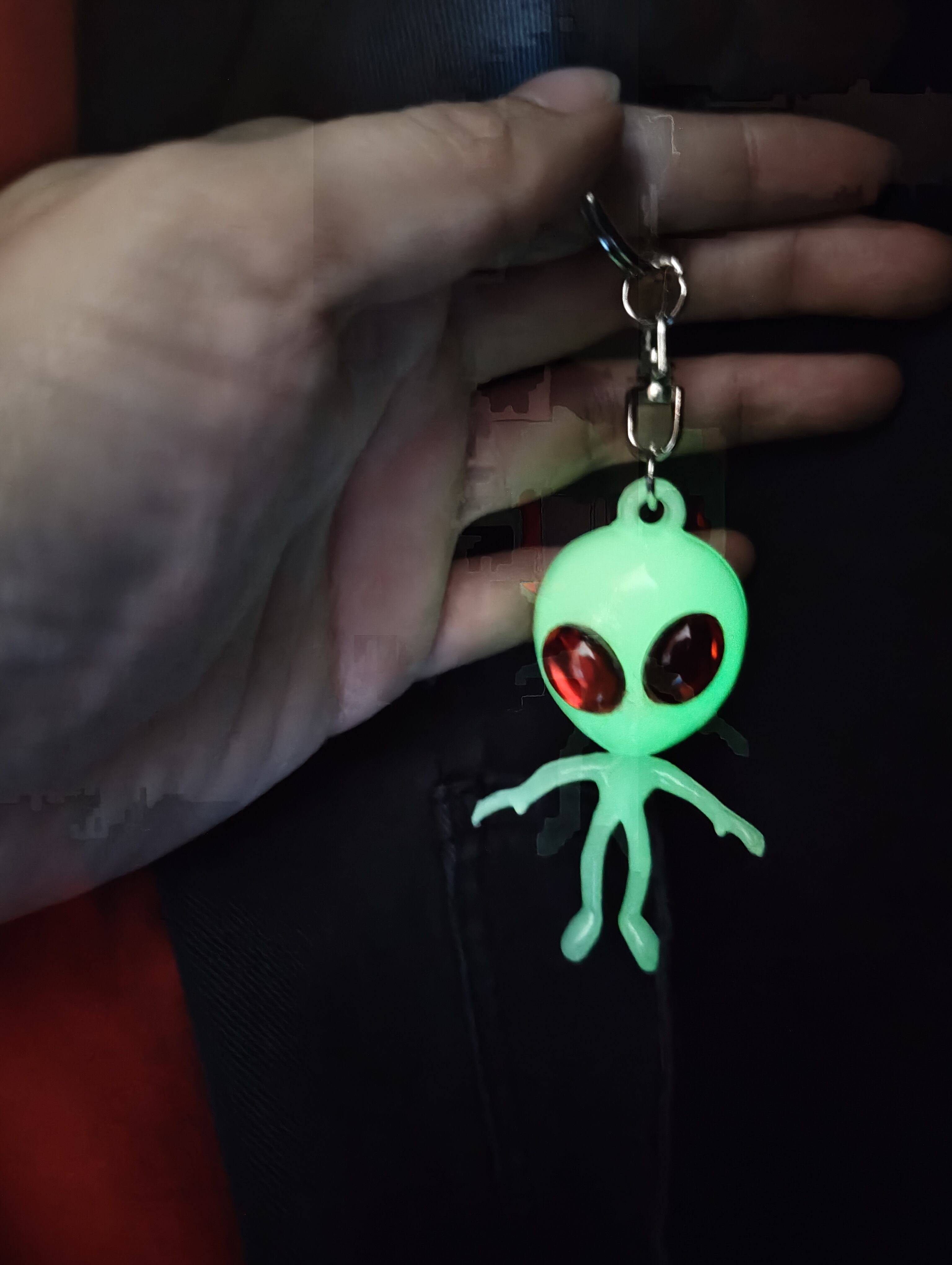 どこから来たの? 蓄光エイリアンキーホルダー 身体がぼんやり光ります~ キッチュ