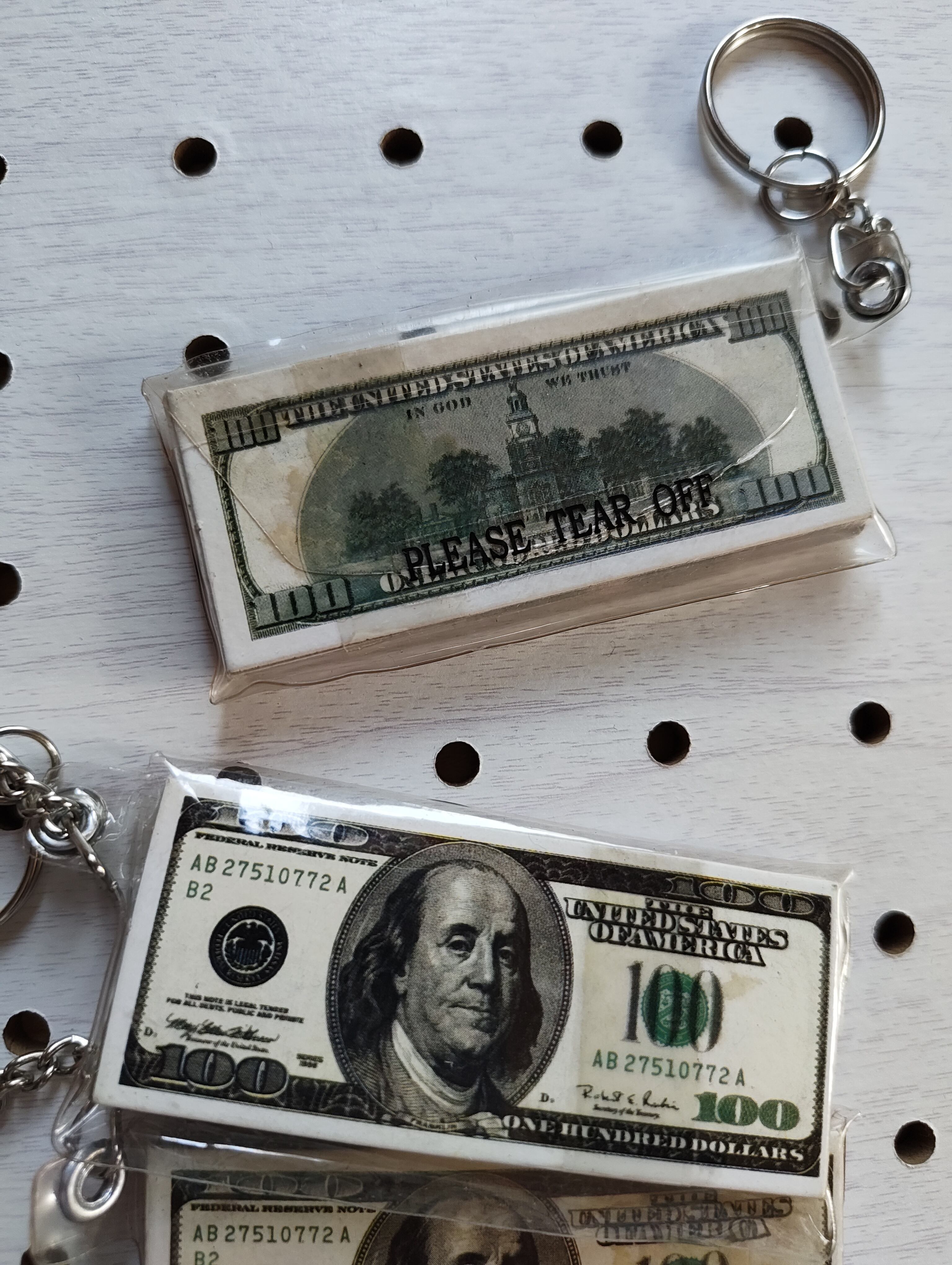 デッドストック☆ 謎が謎を呼ぶ「100ドル札キーチェーン」ビニールケース入り