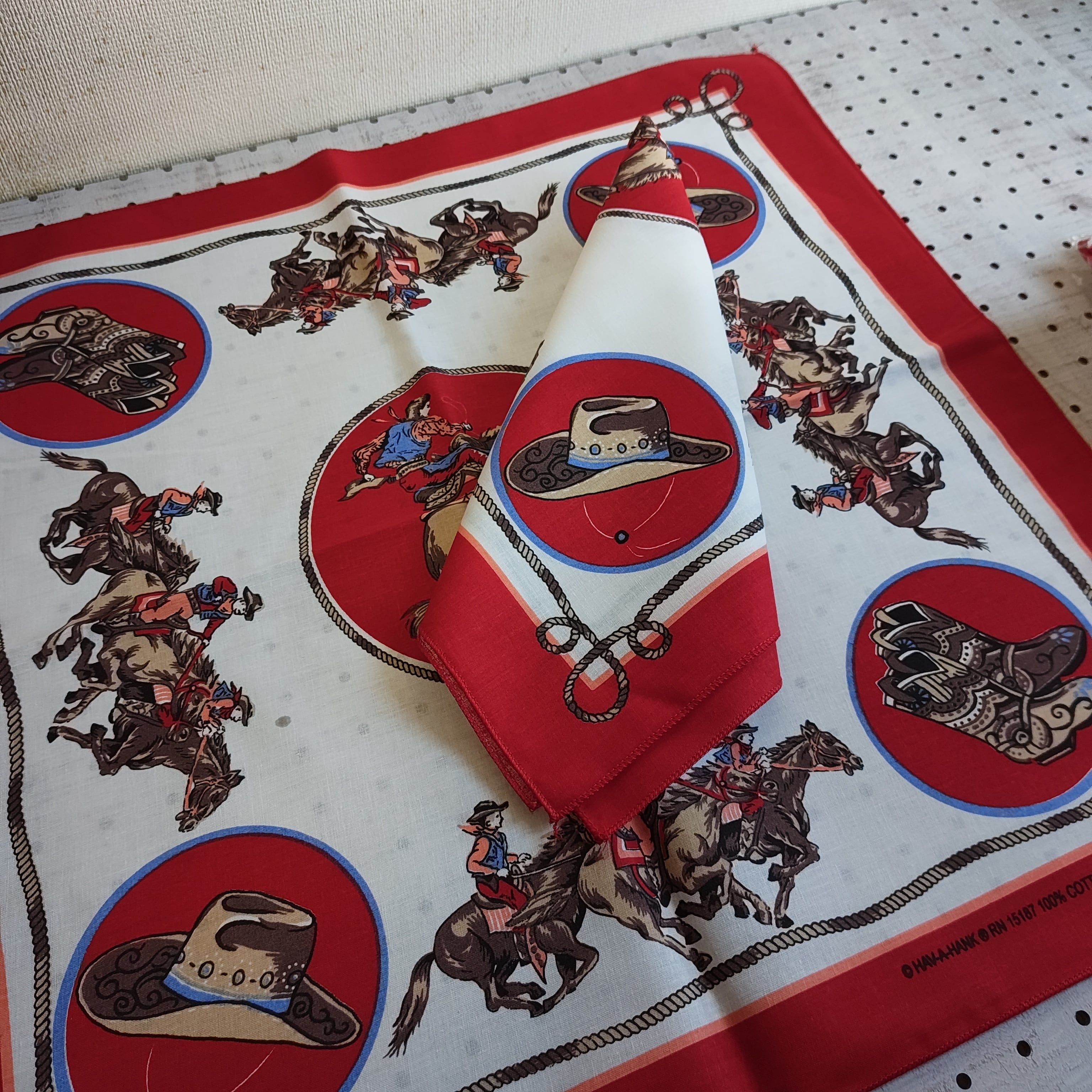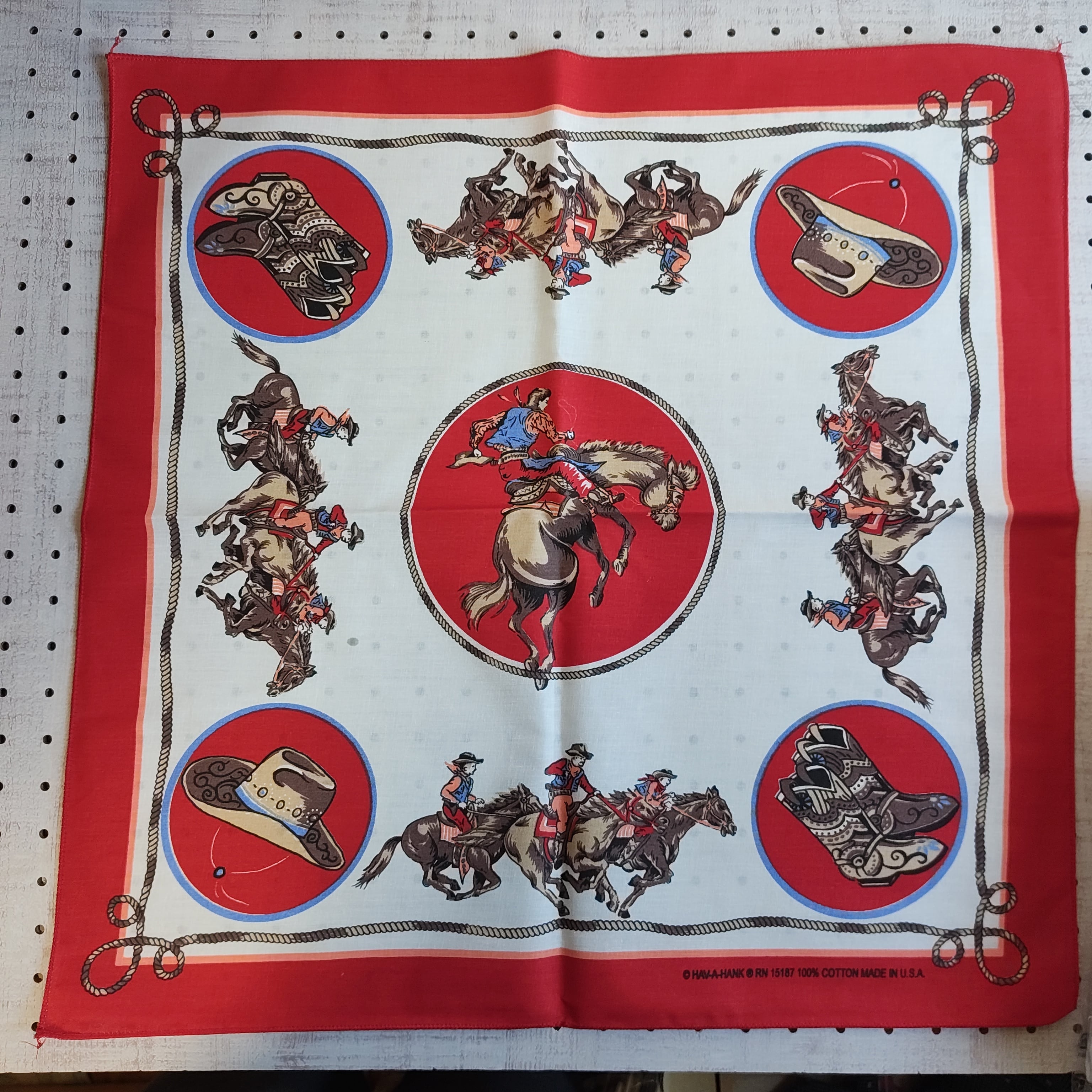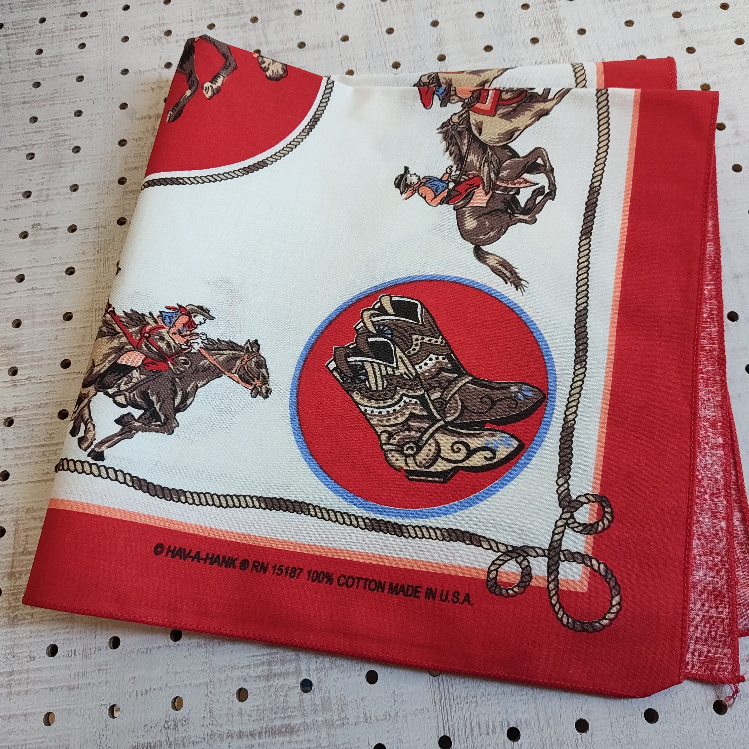 Brand-new☆HAV-A-HANK ハバハンク カウボーイ柄バンダナ Rodeo Cowboy Red BANDANA MADE IN U.S.A