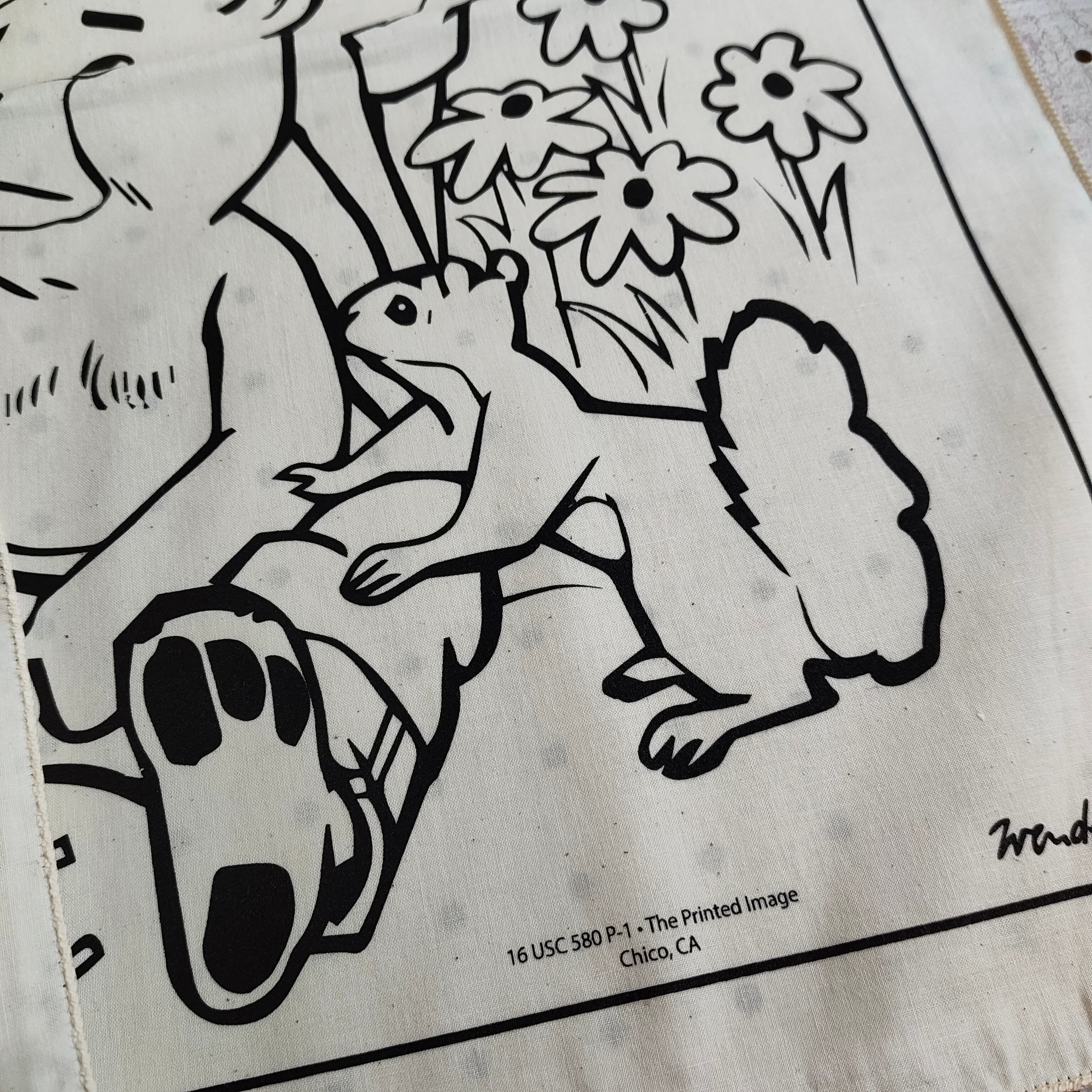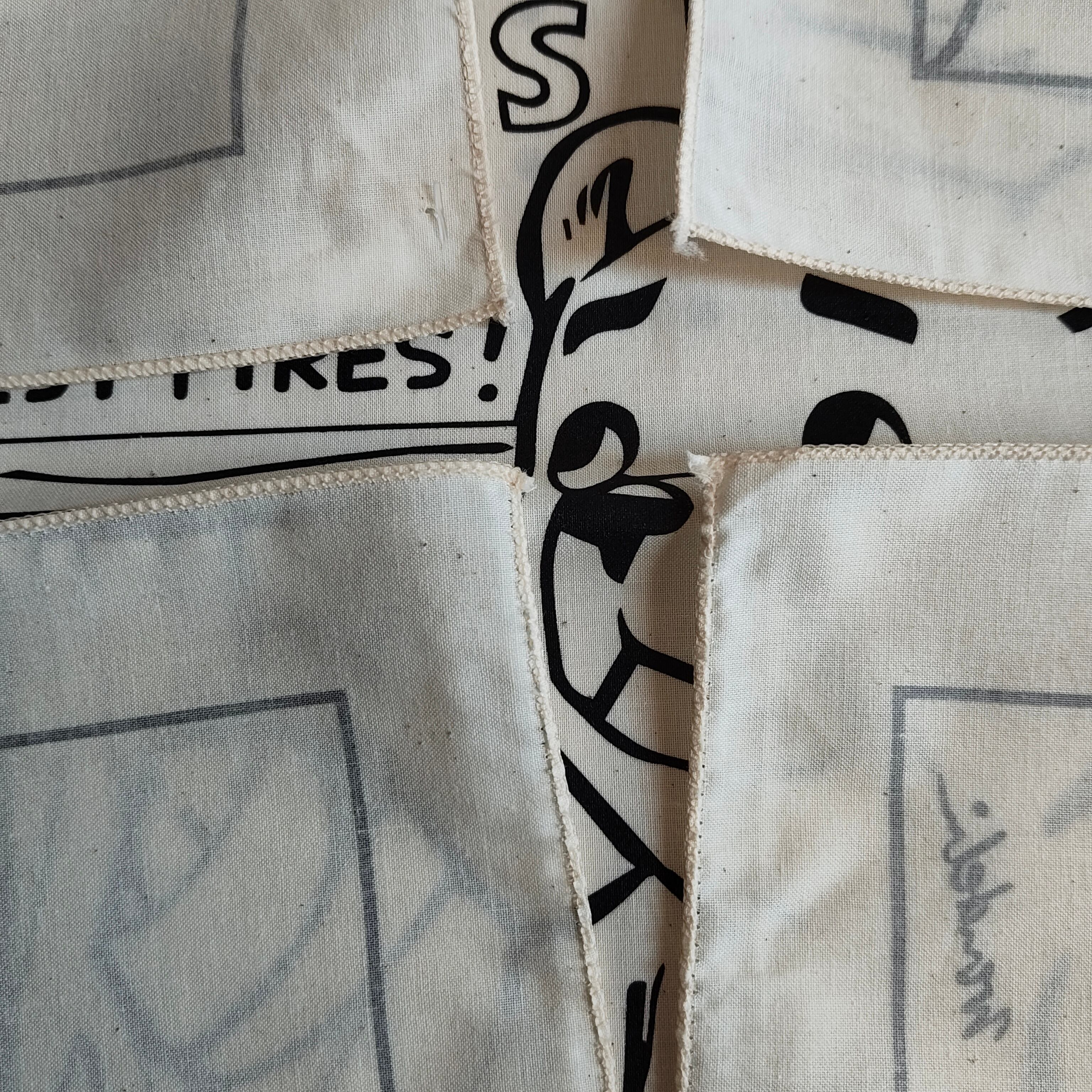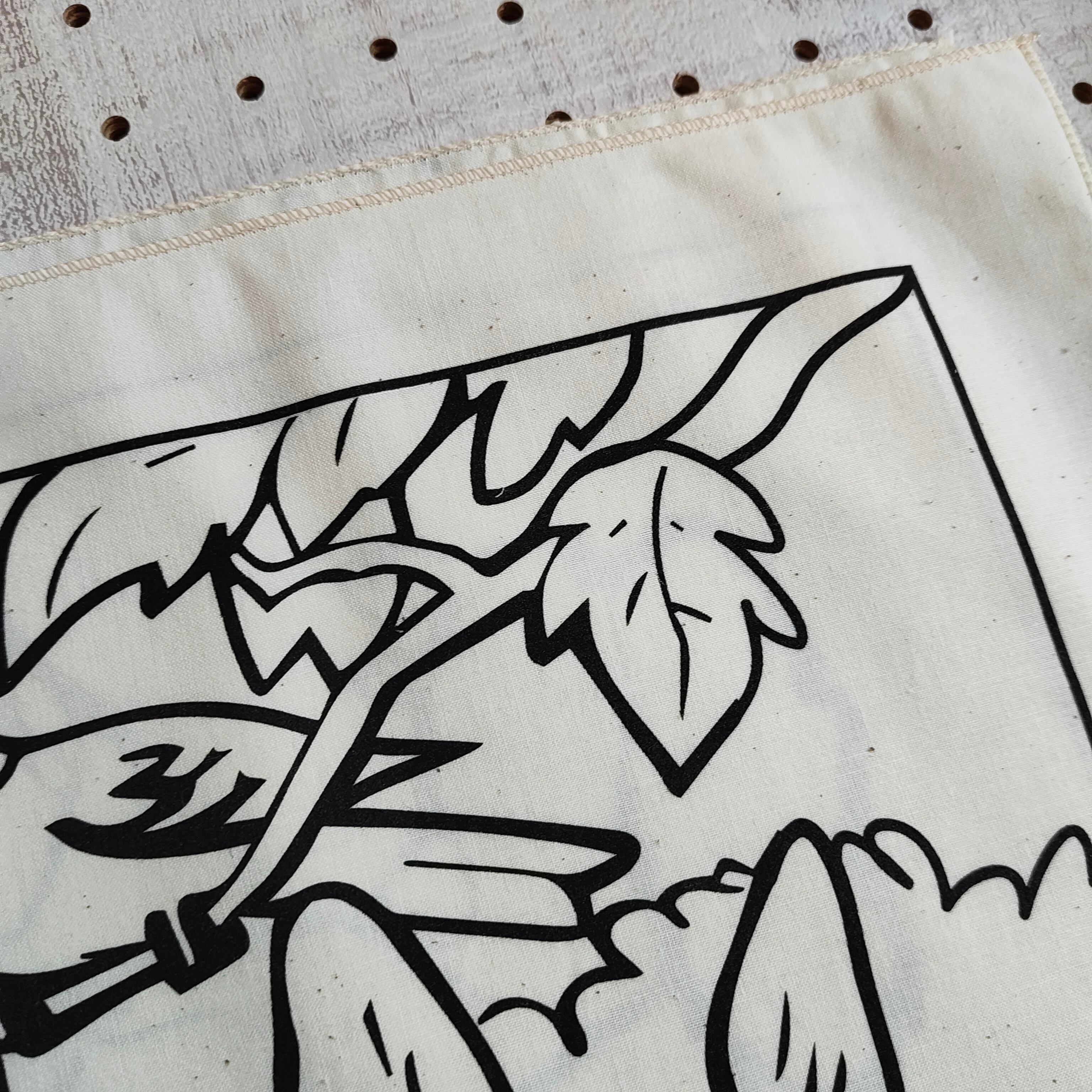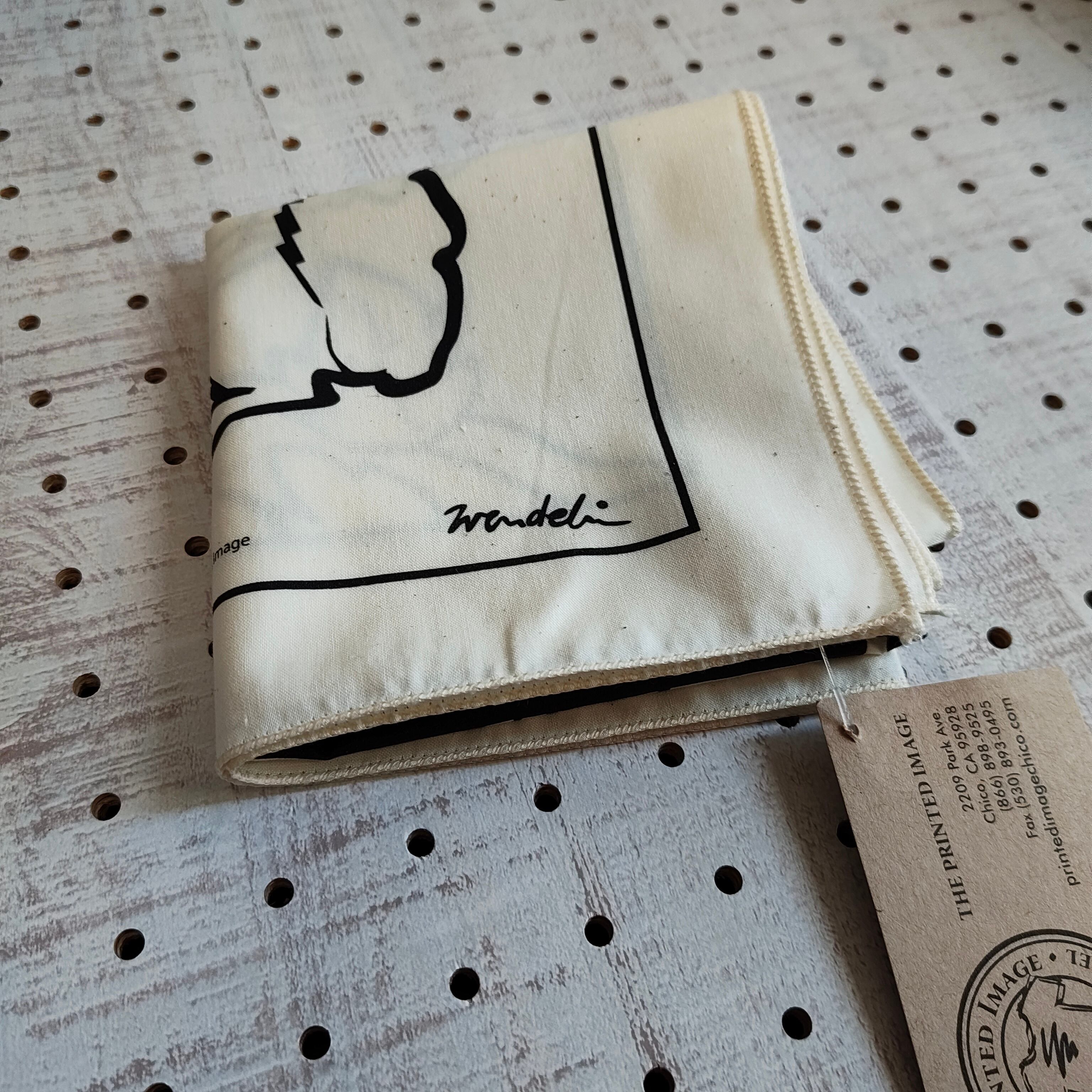 このモノトーンとイラストのタッチがなんともいえずいい感じのバンダナです。
