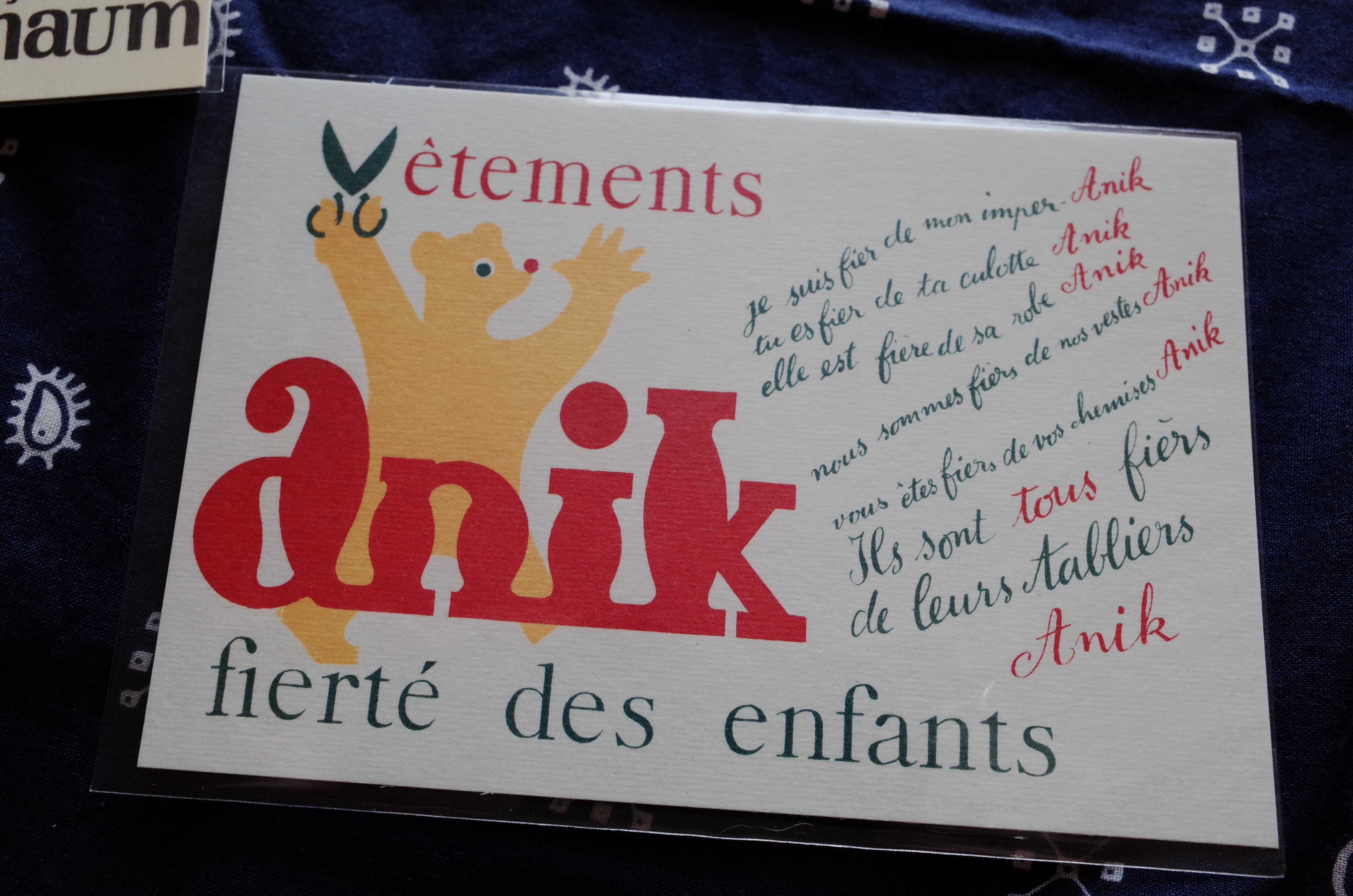 フランス語ですね anikというフランスの子供服メーカーのデザインのようです。