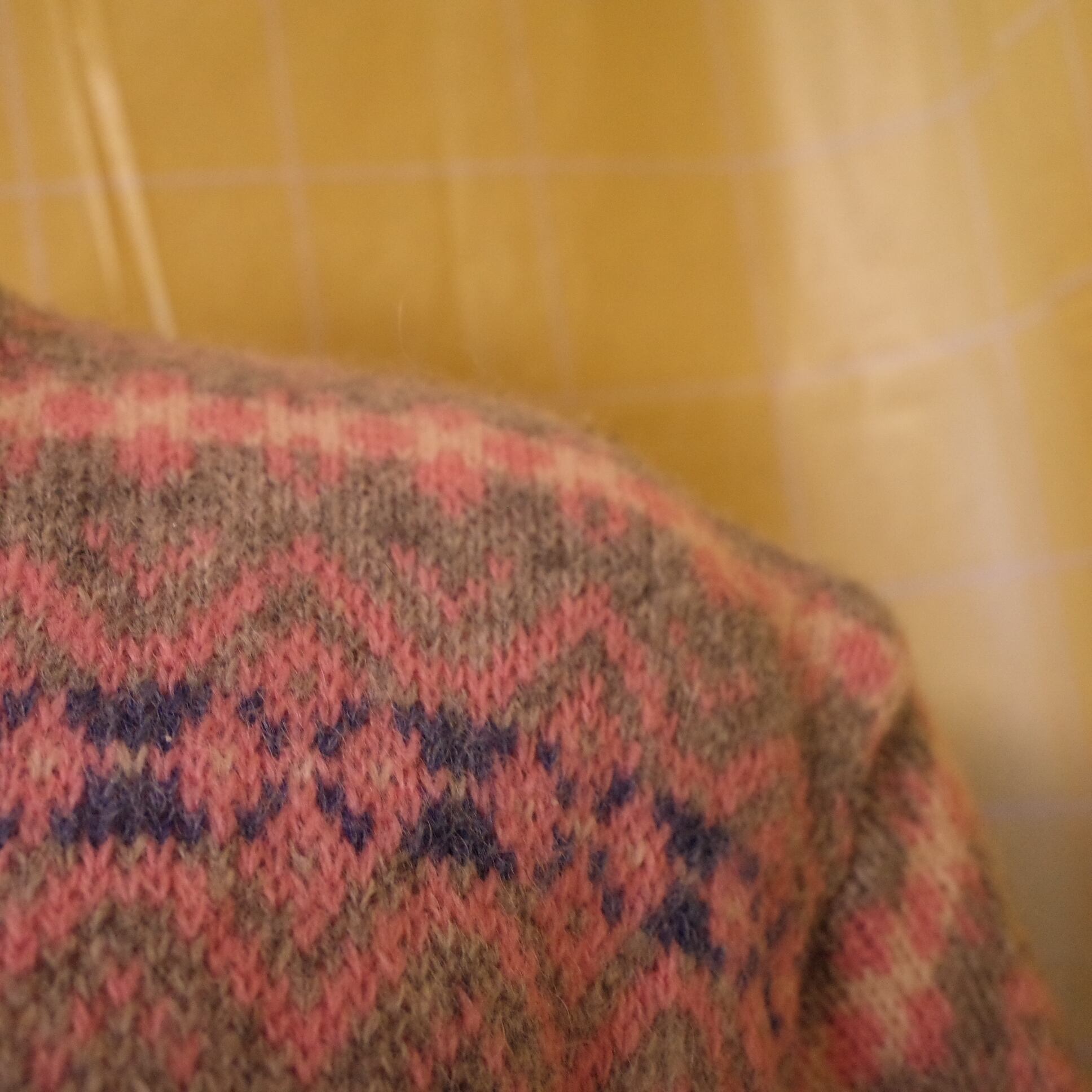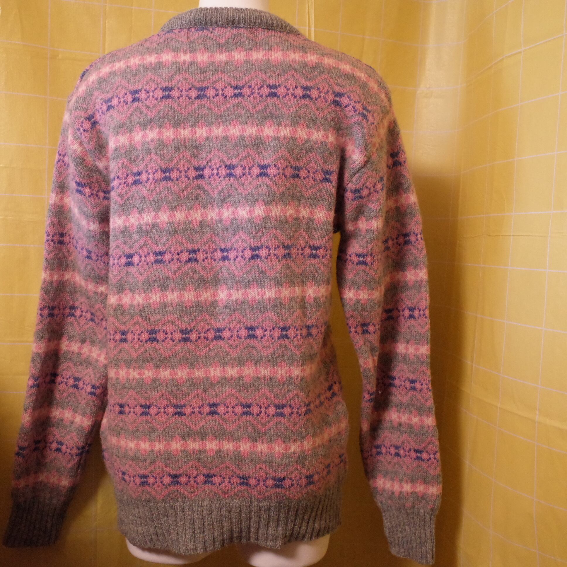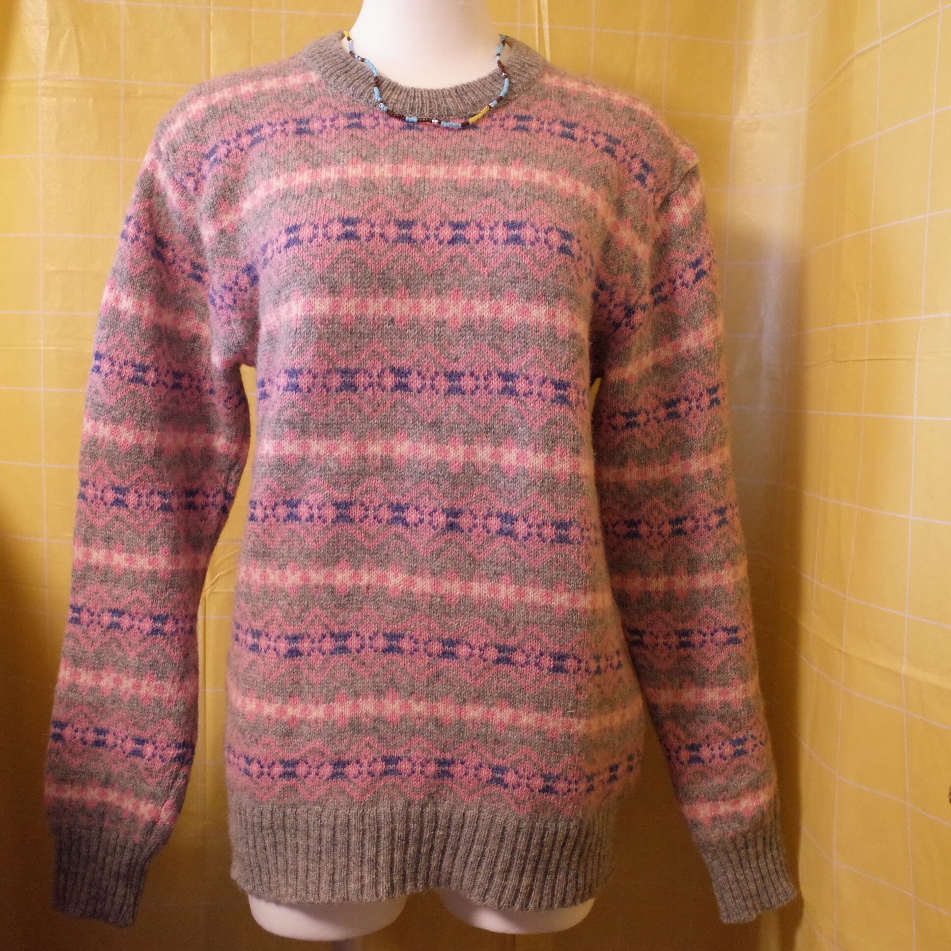 used フェアアイル ふんわりウールセーター グレー×ピンク