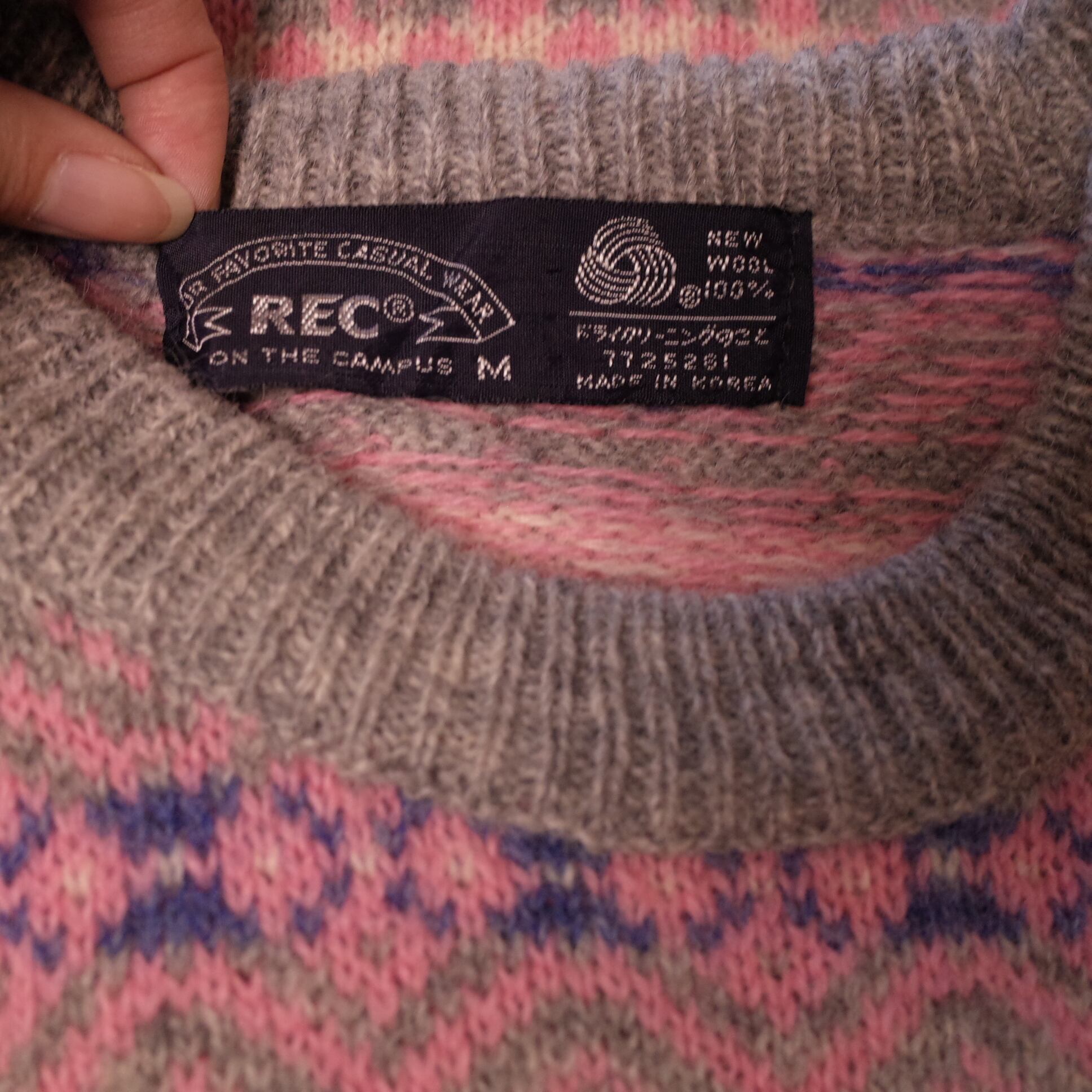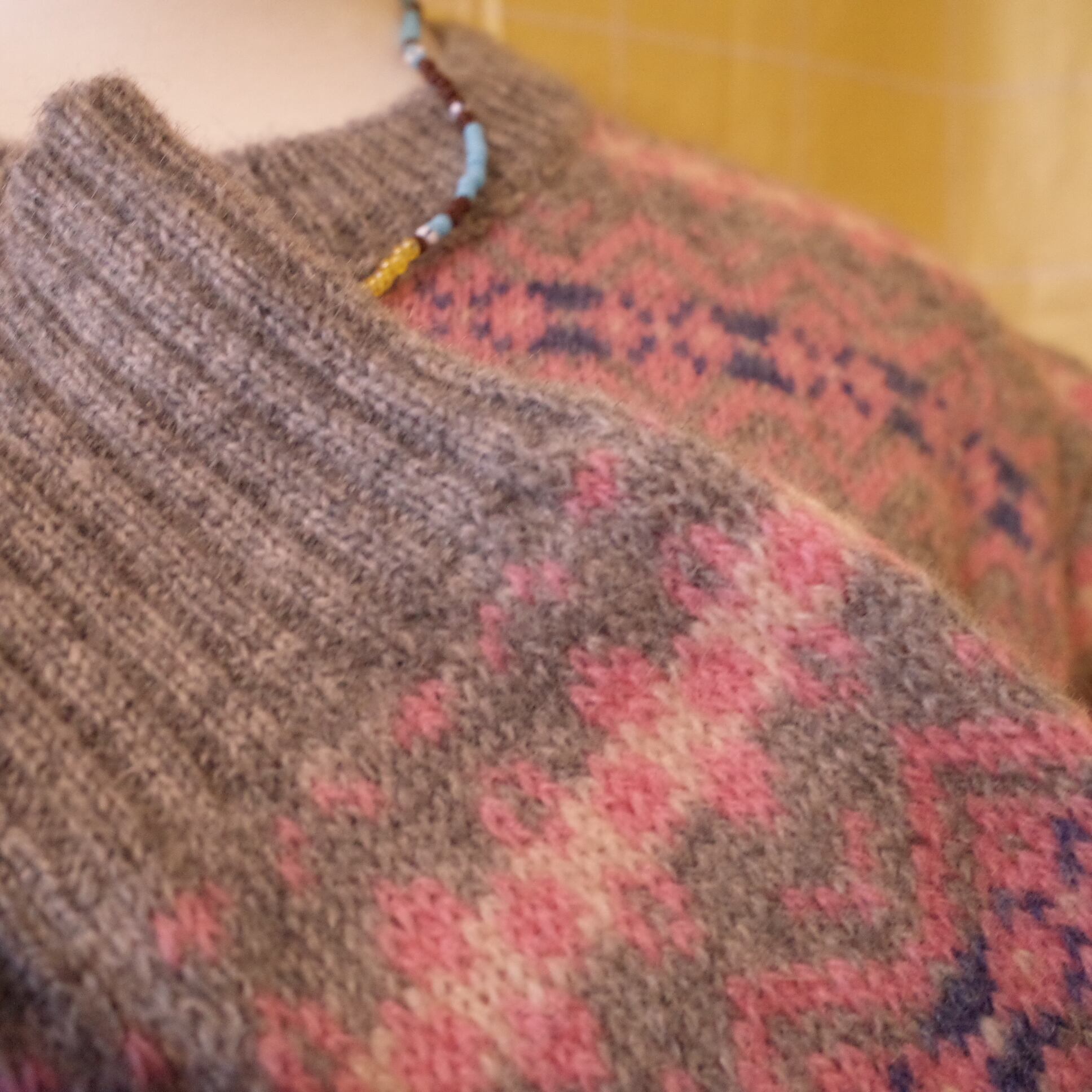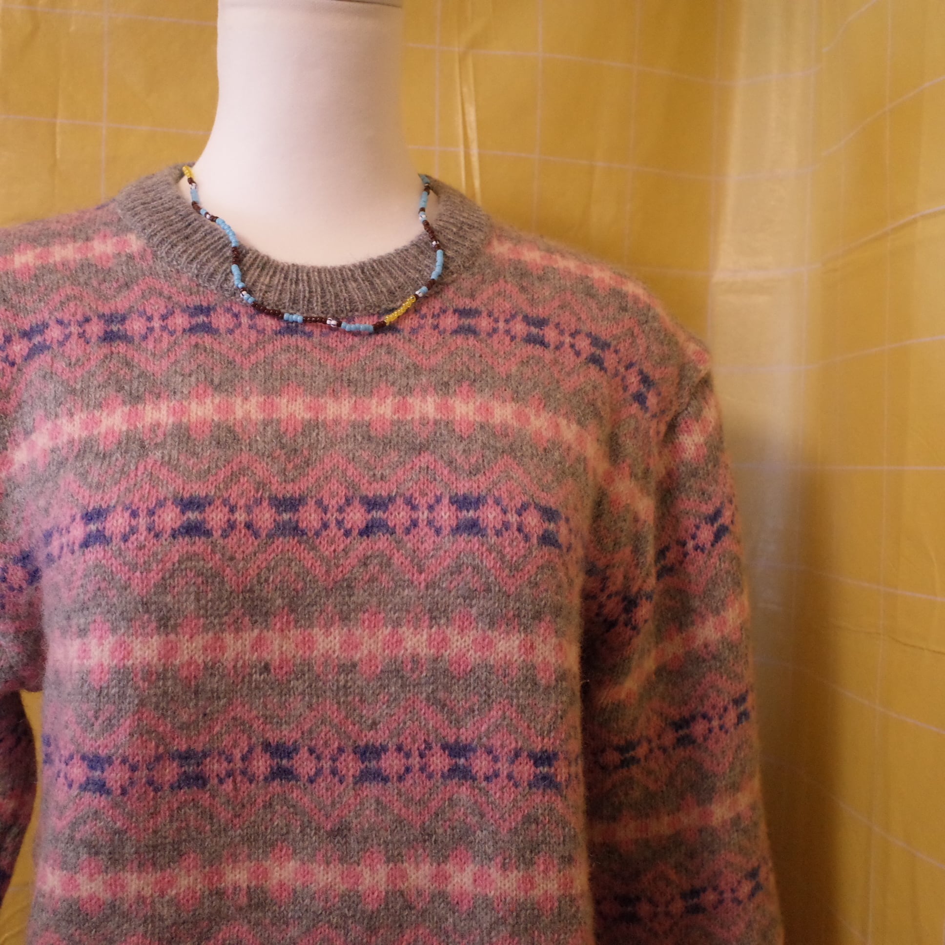 used フェアアイル ふんわりウールセーター グレー×ピンク