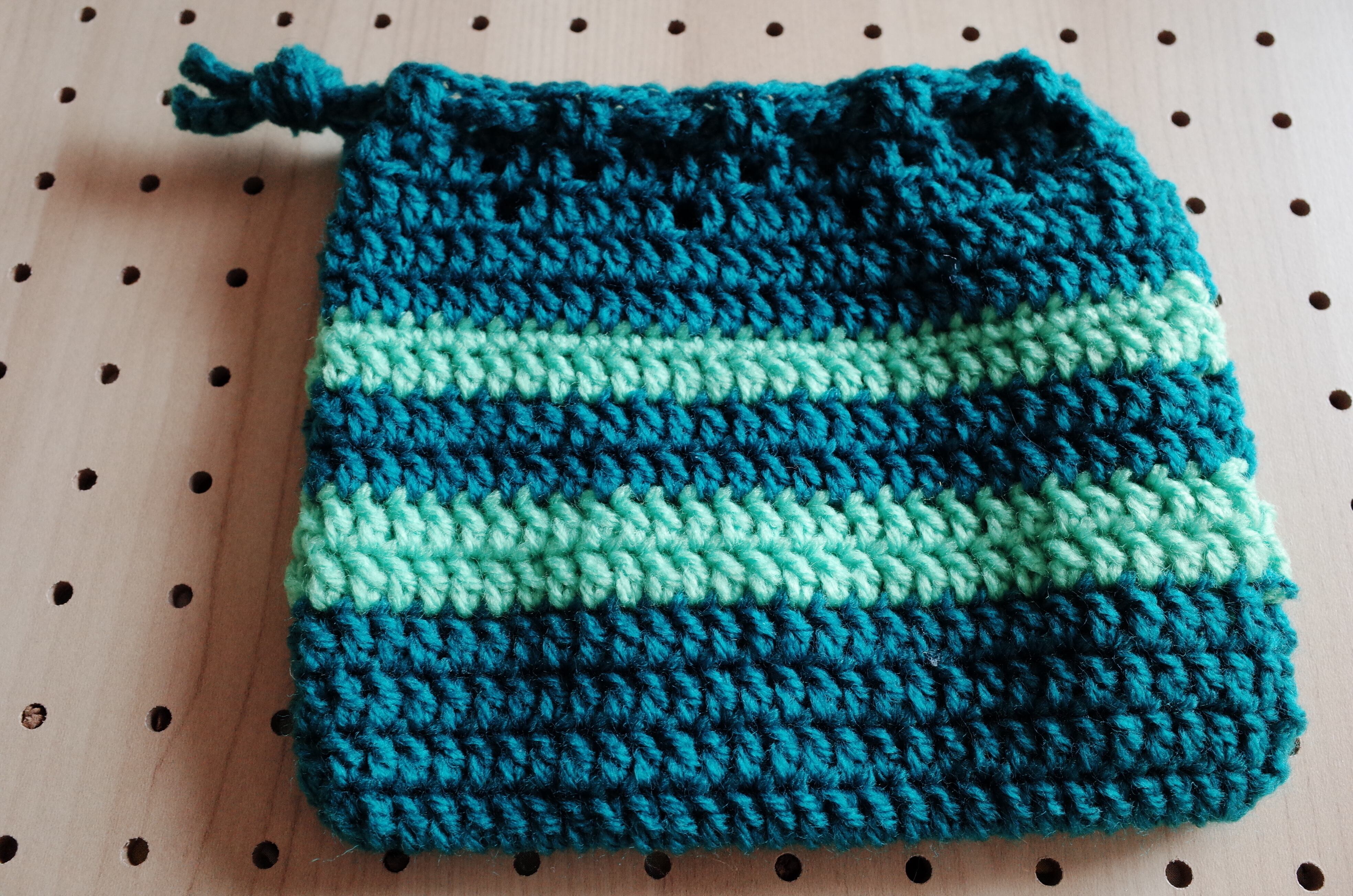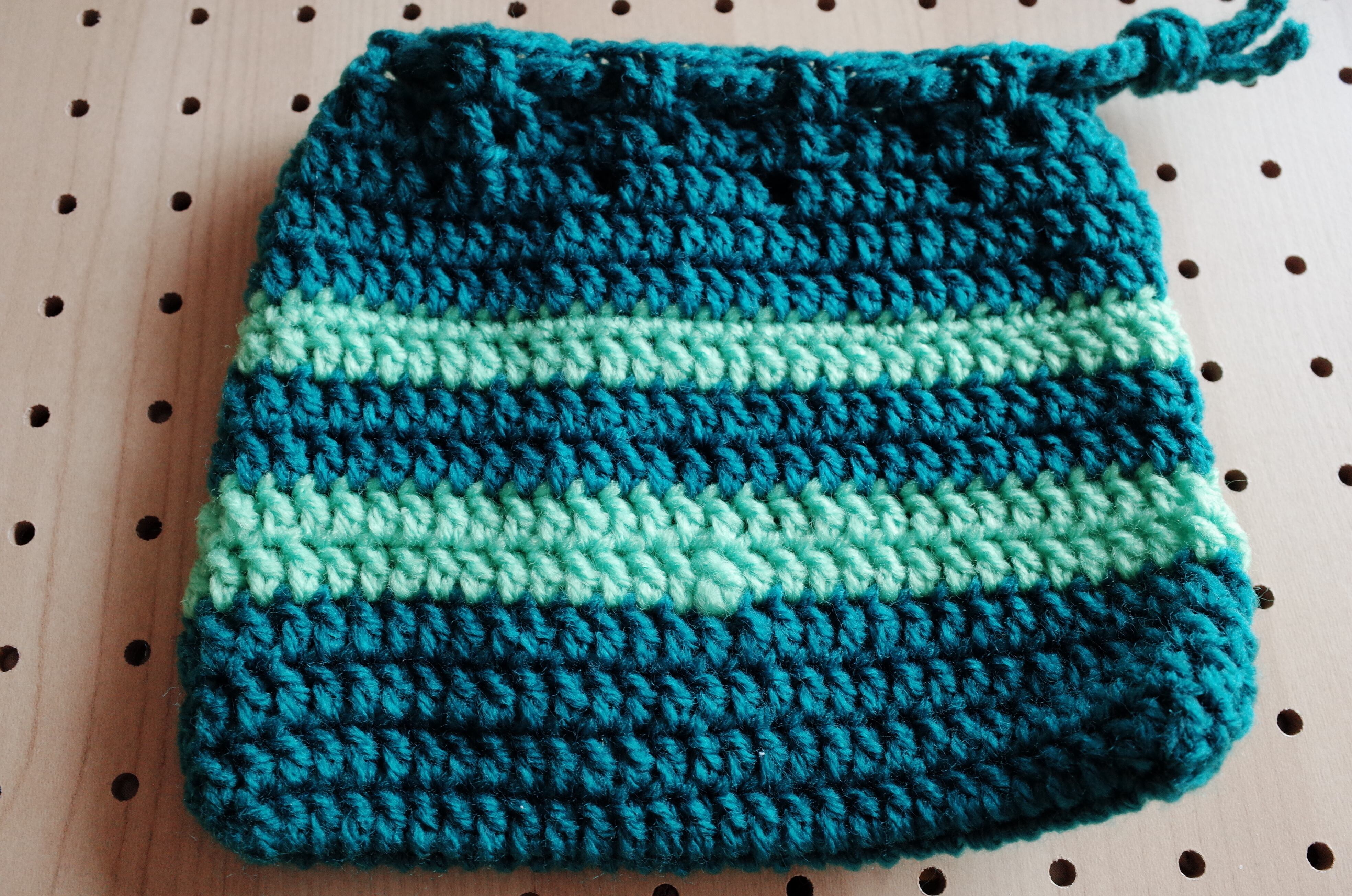 ハンドメイド クロシェニット 巾着 ミニポーチ グリーンボーダー handmade chochet minipouch