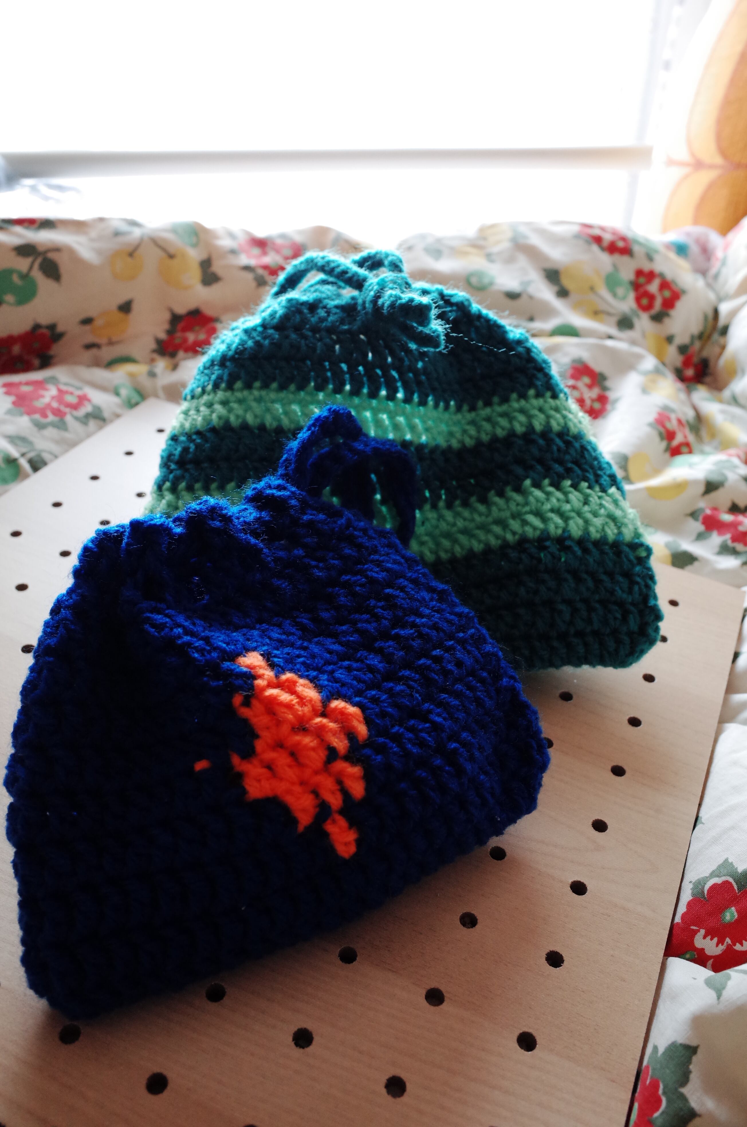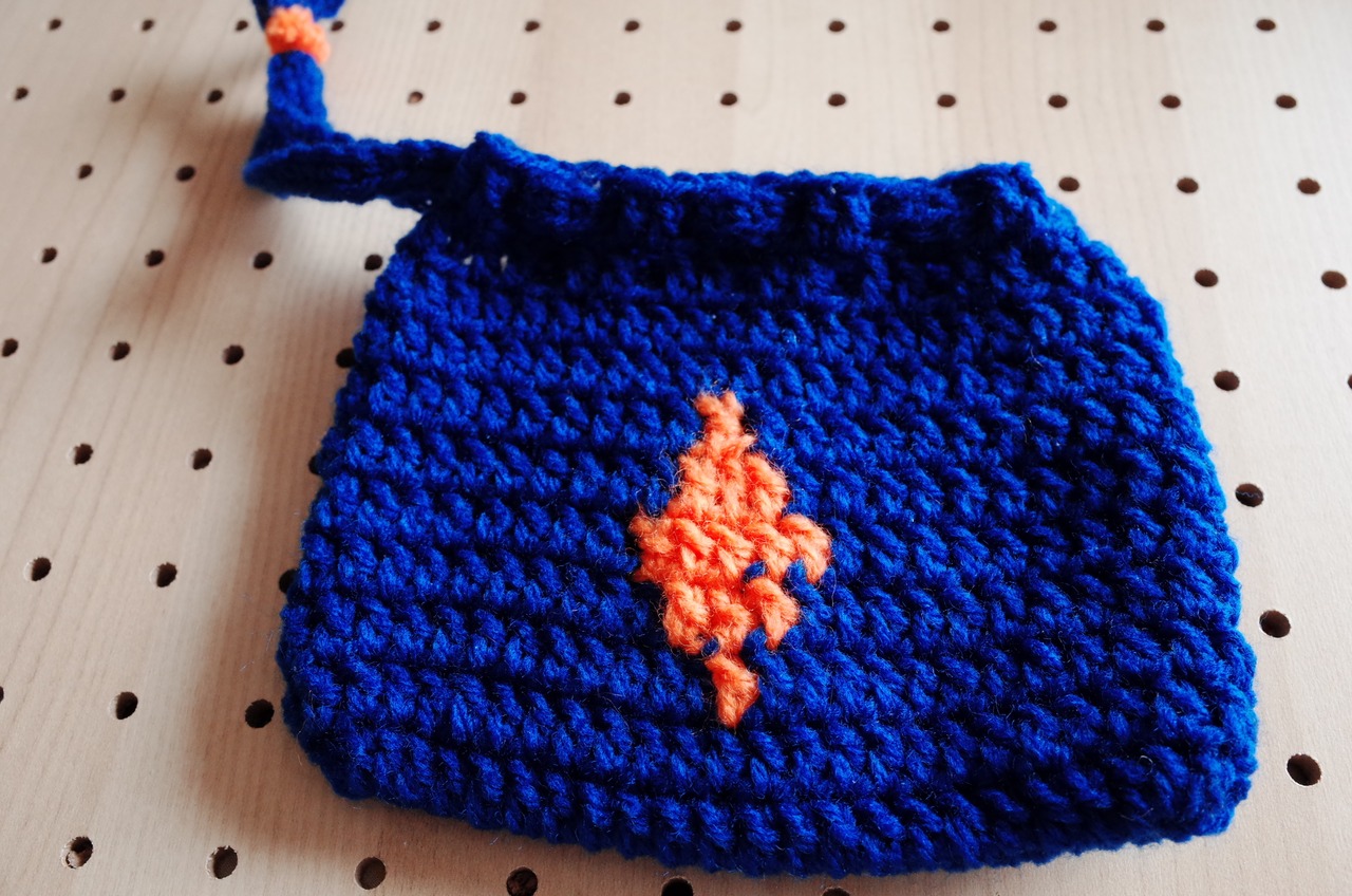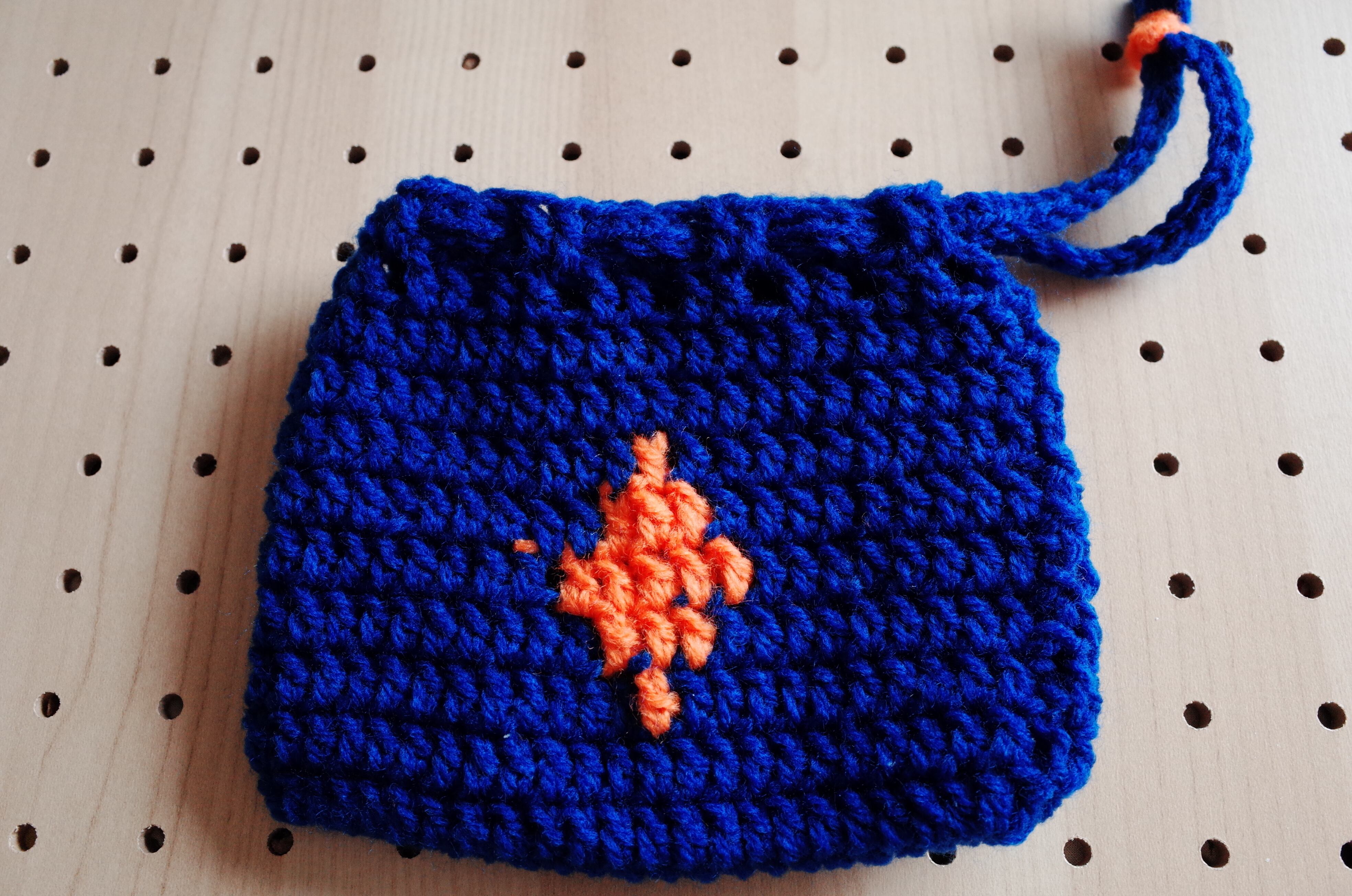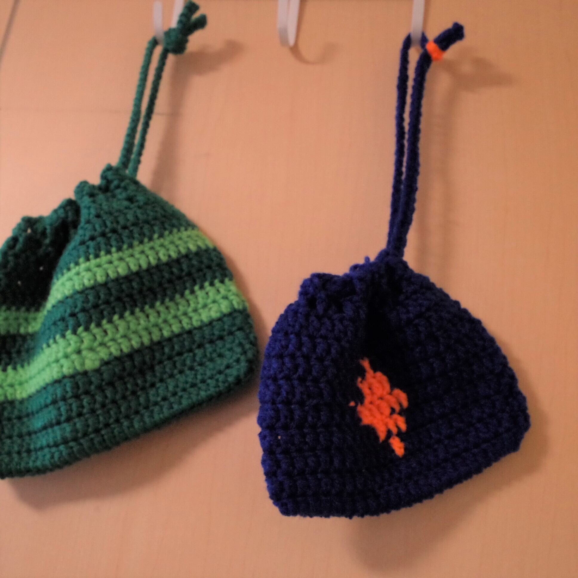再入荷!ハンドメイド クロシェニット 巾着 ミニポーチ ブルーダイヤ handmade chochet minipouch