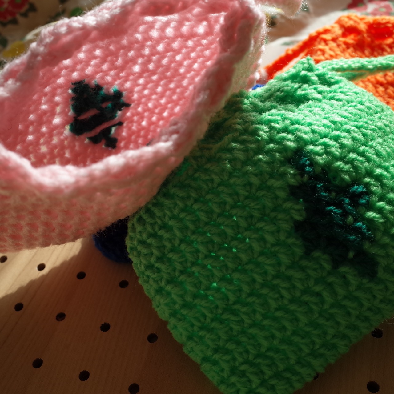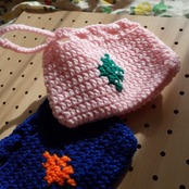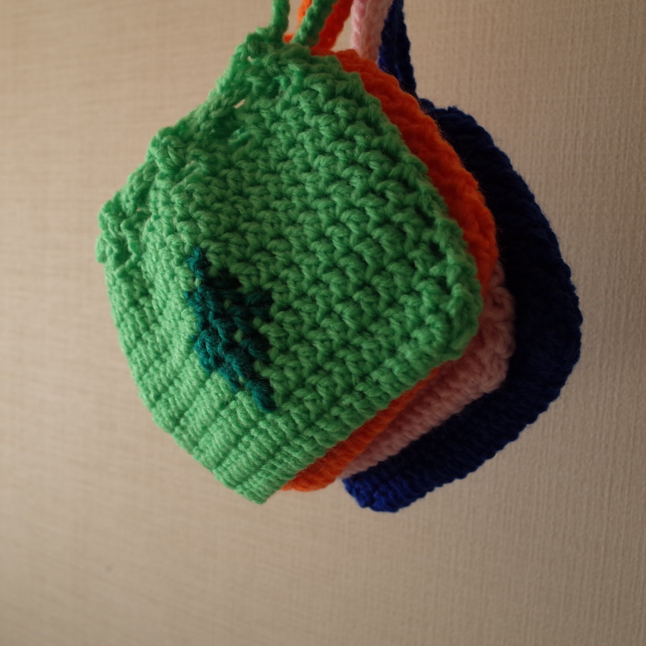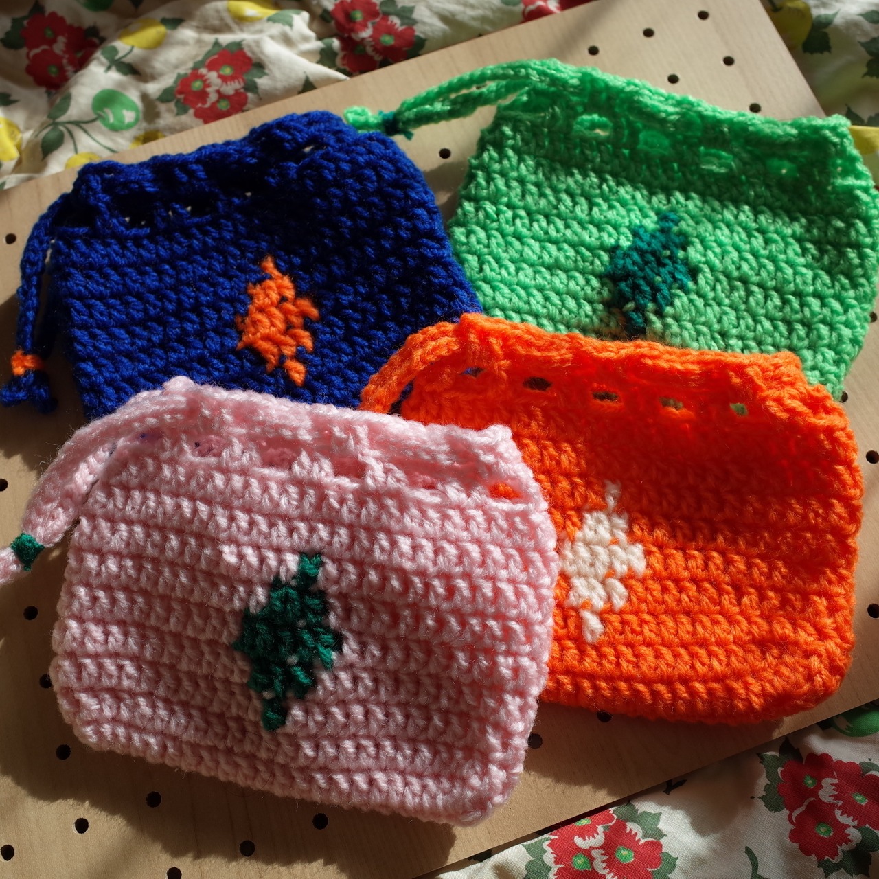 ハンドメイド クロシェニット 巾着 かぎ編み ミニポーチ handmade chochet minipouch