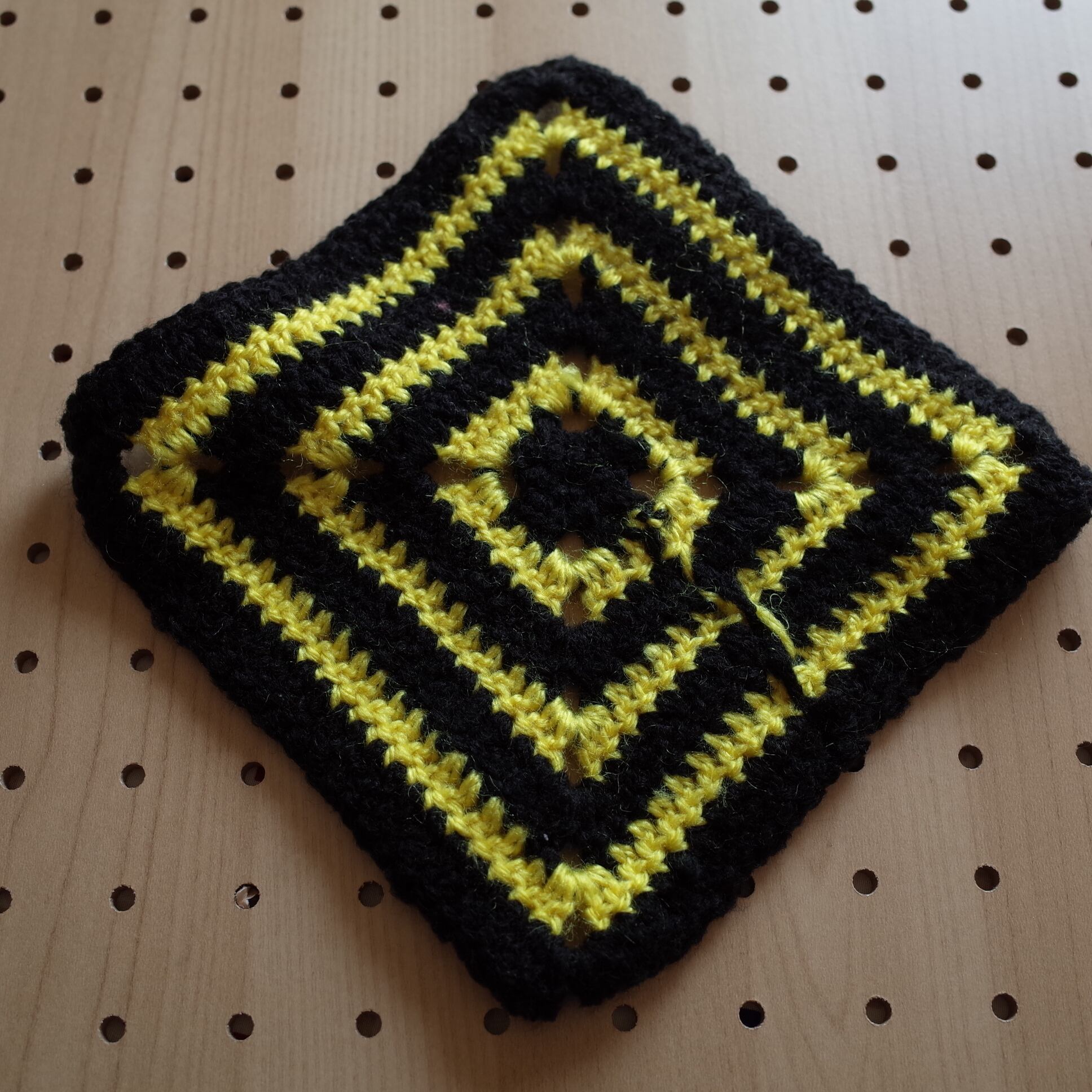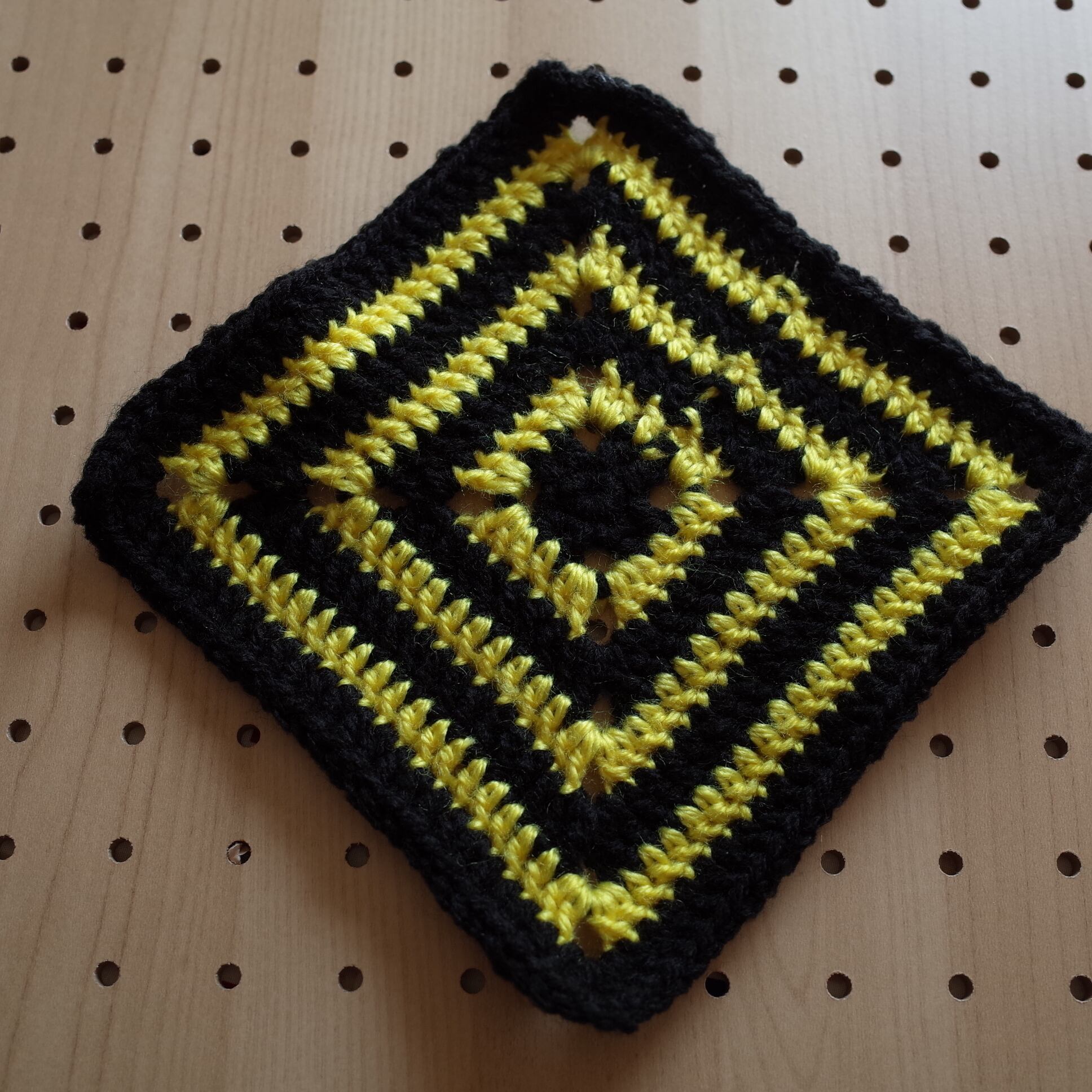 handmade chochet ハンドメイド かぎ編み クロシェ ドイリー 「スクエアポップ」ブラック×イエロー