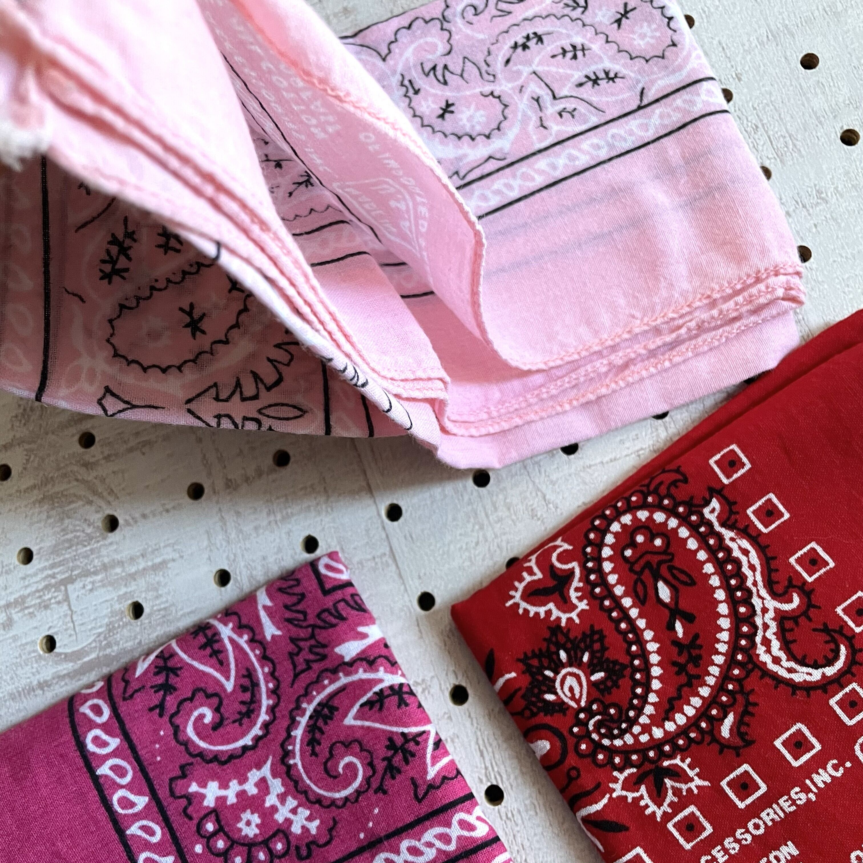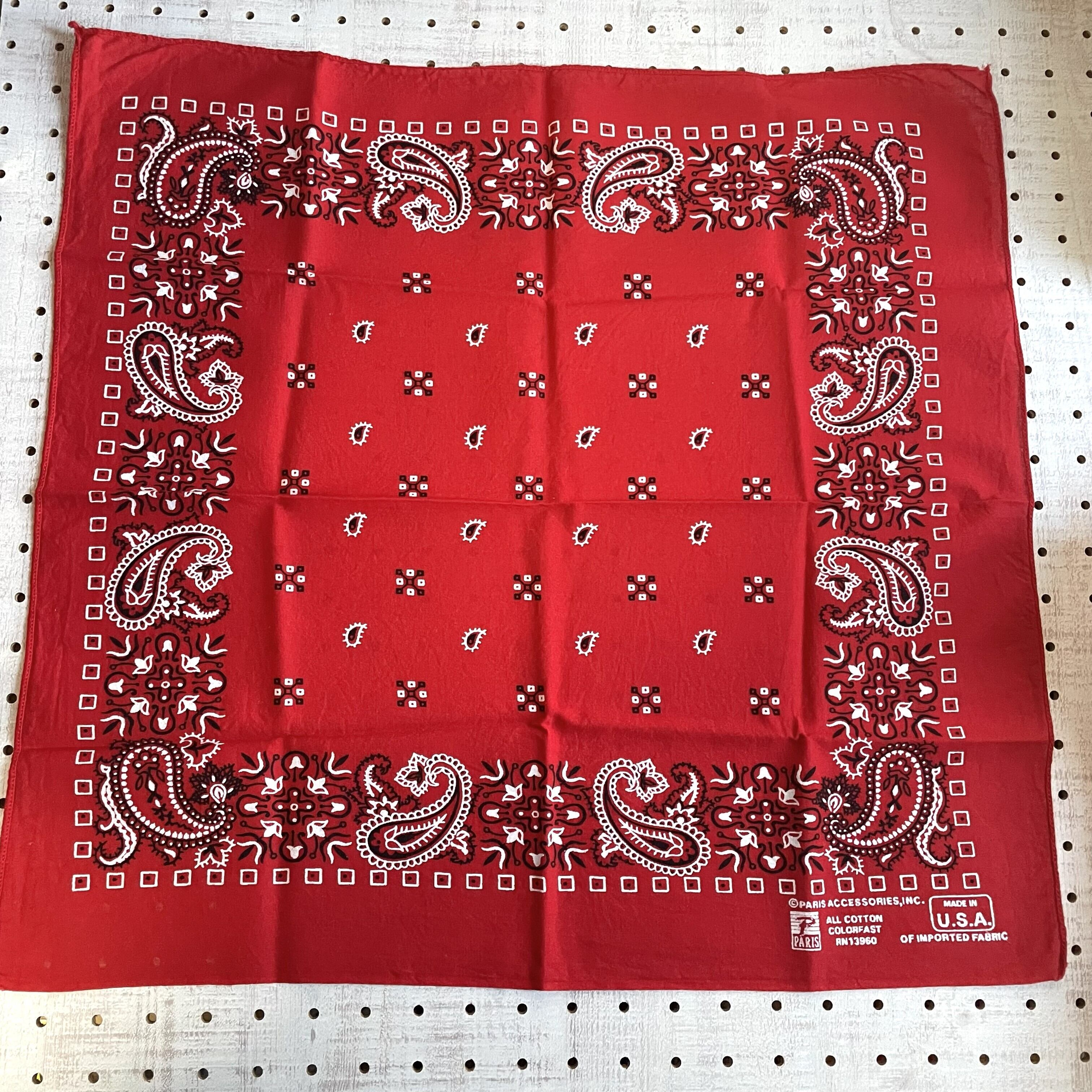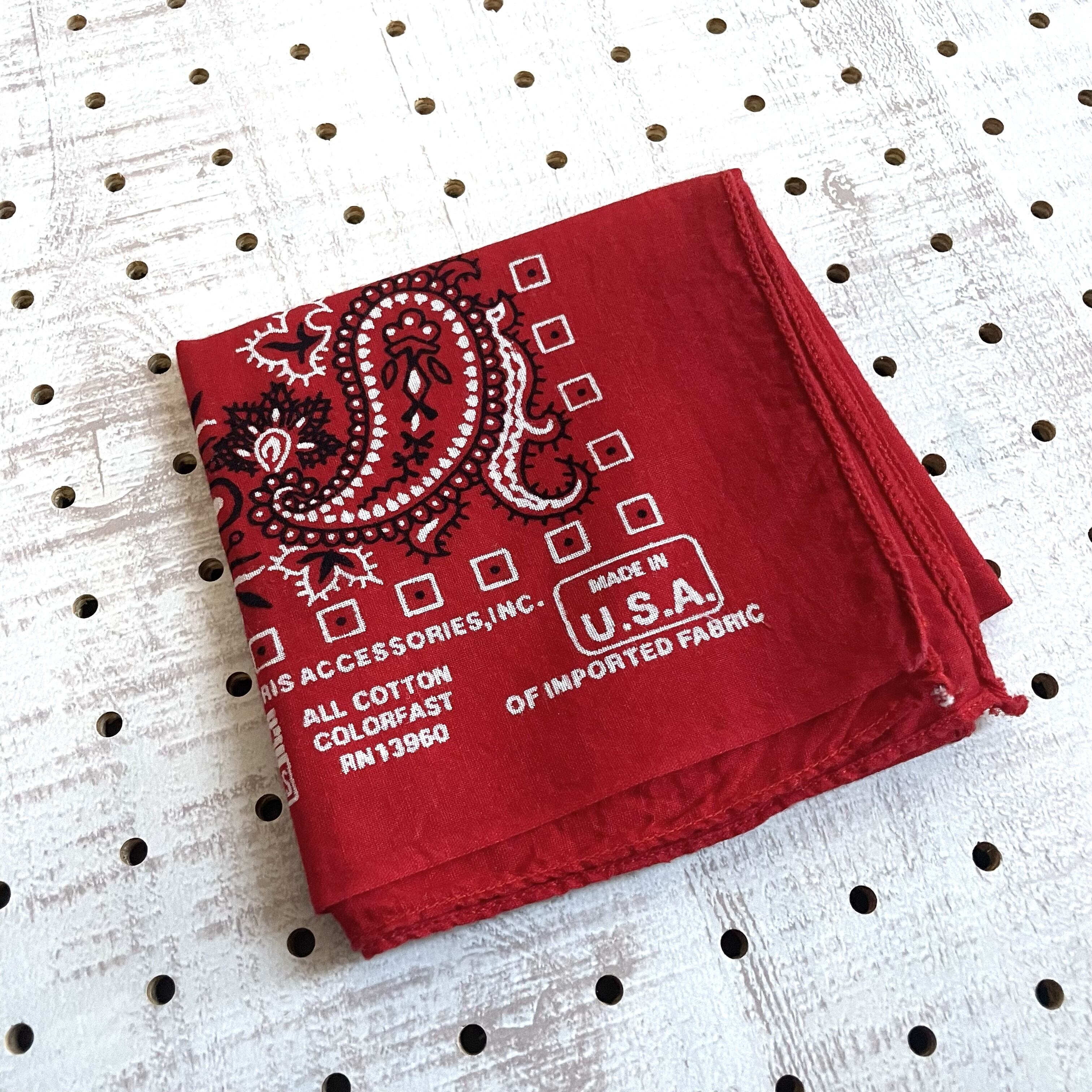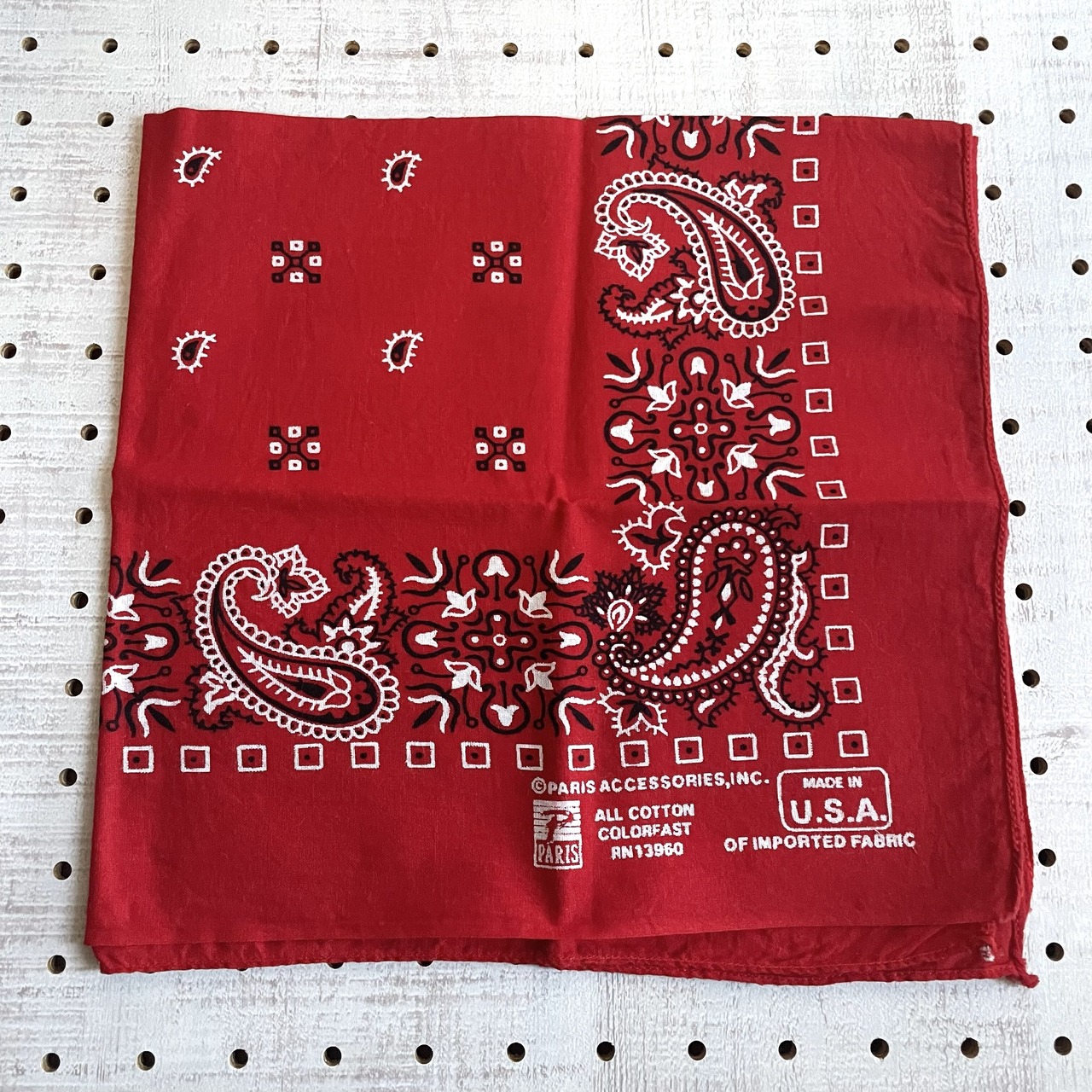 80~90s【MADE IN USA】used bandanna ☆Paris Accessories ユーズドバンダナ レッドペイズリー