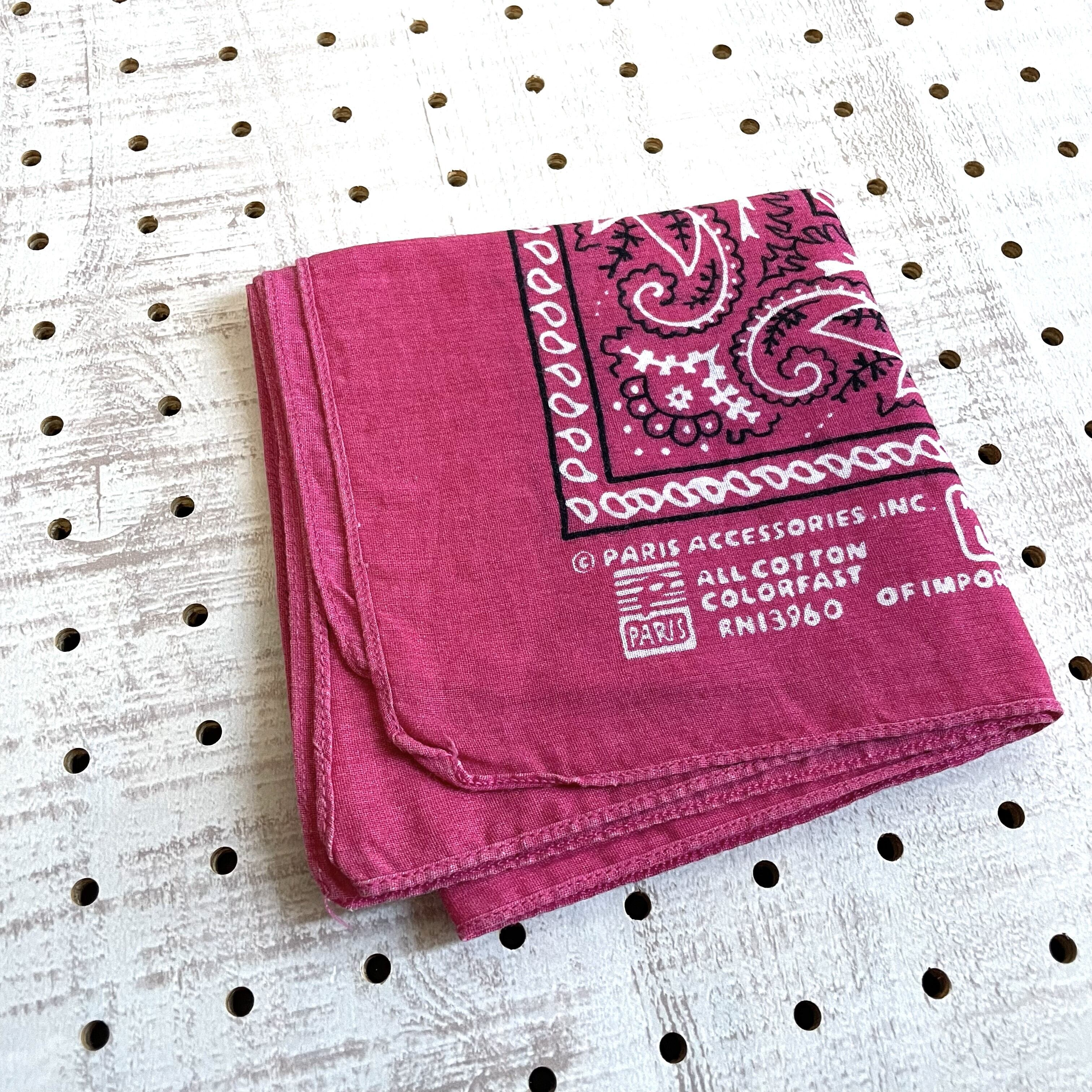 90s~【MADE IN USA】used bandanna ☆Paris Accessories ユーズドバンダナ ビビットピンク