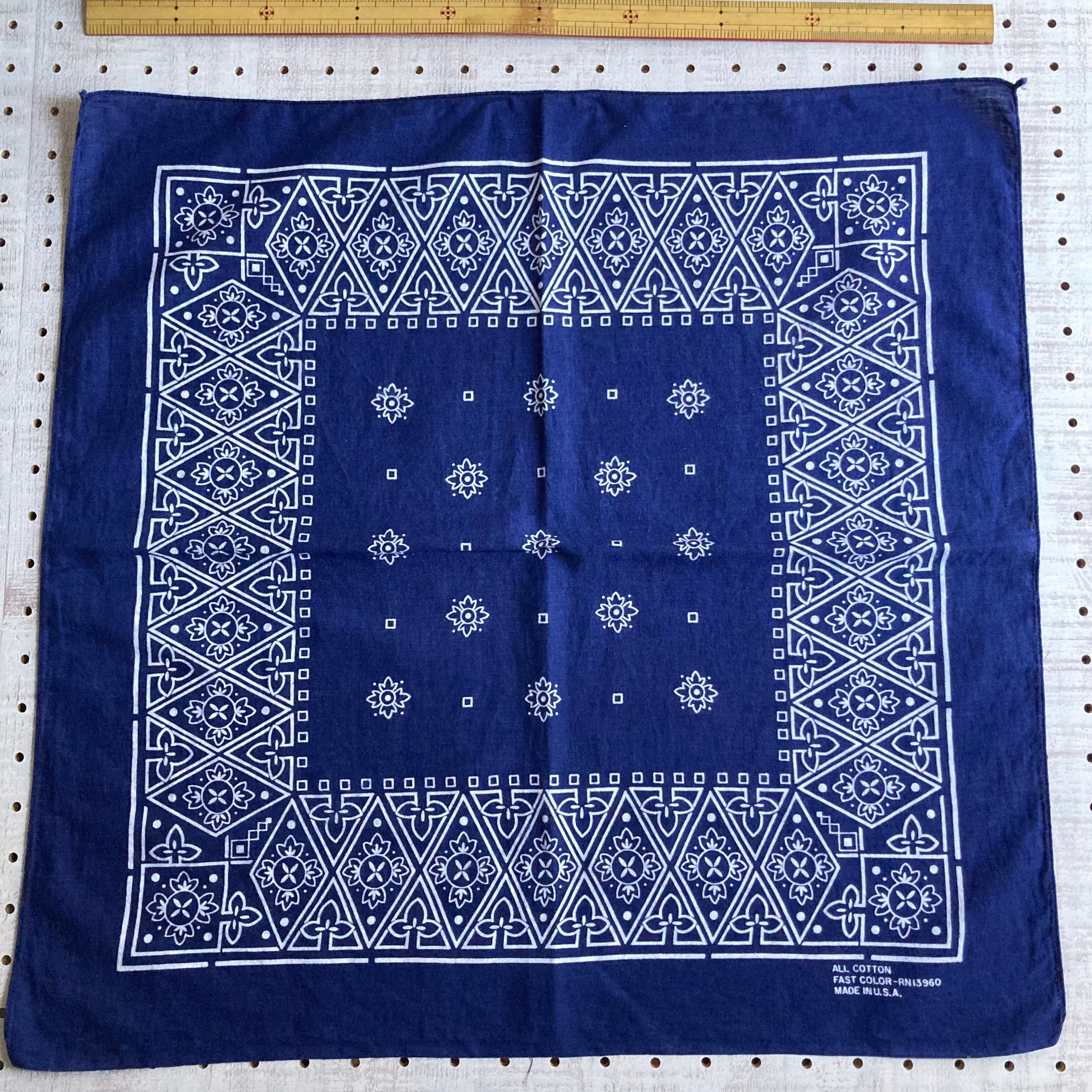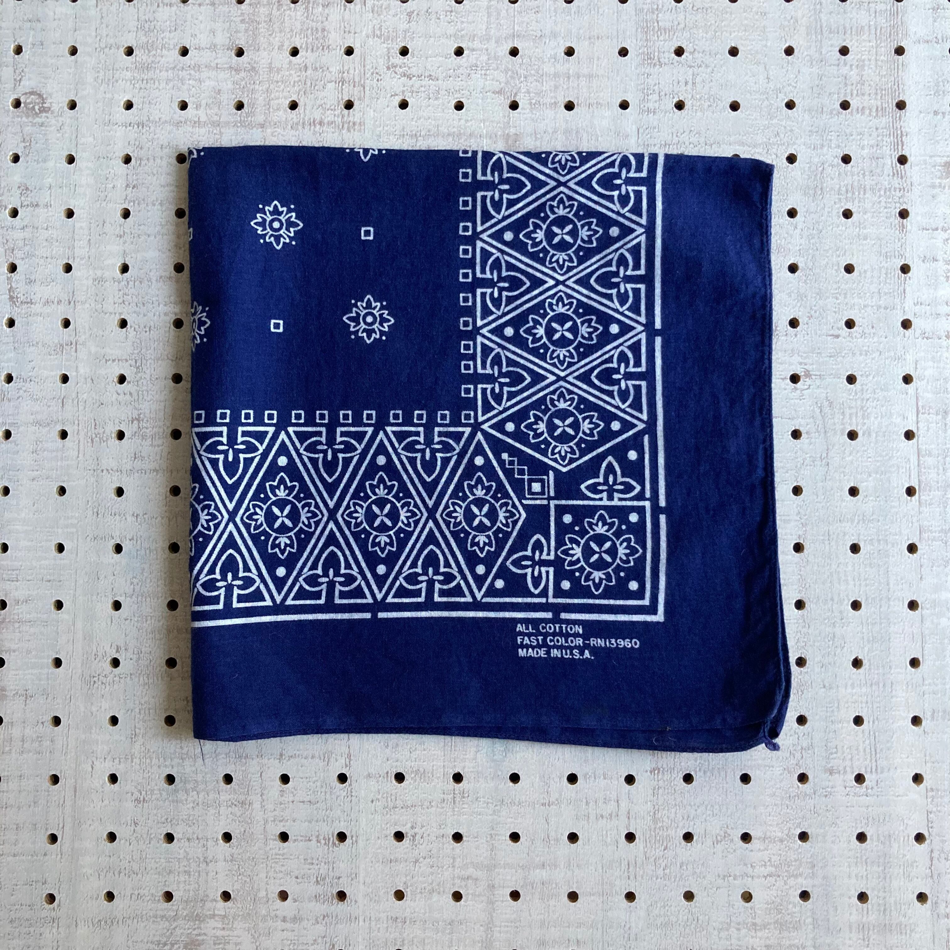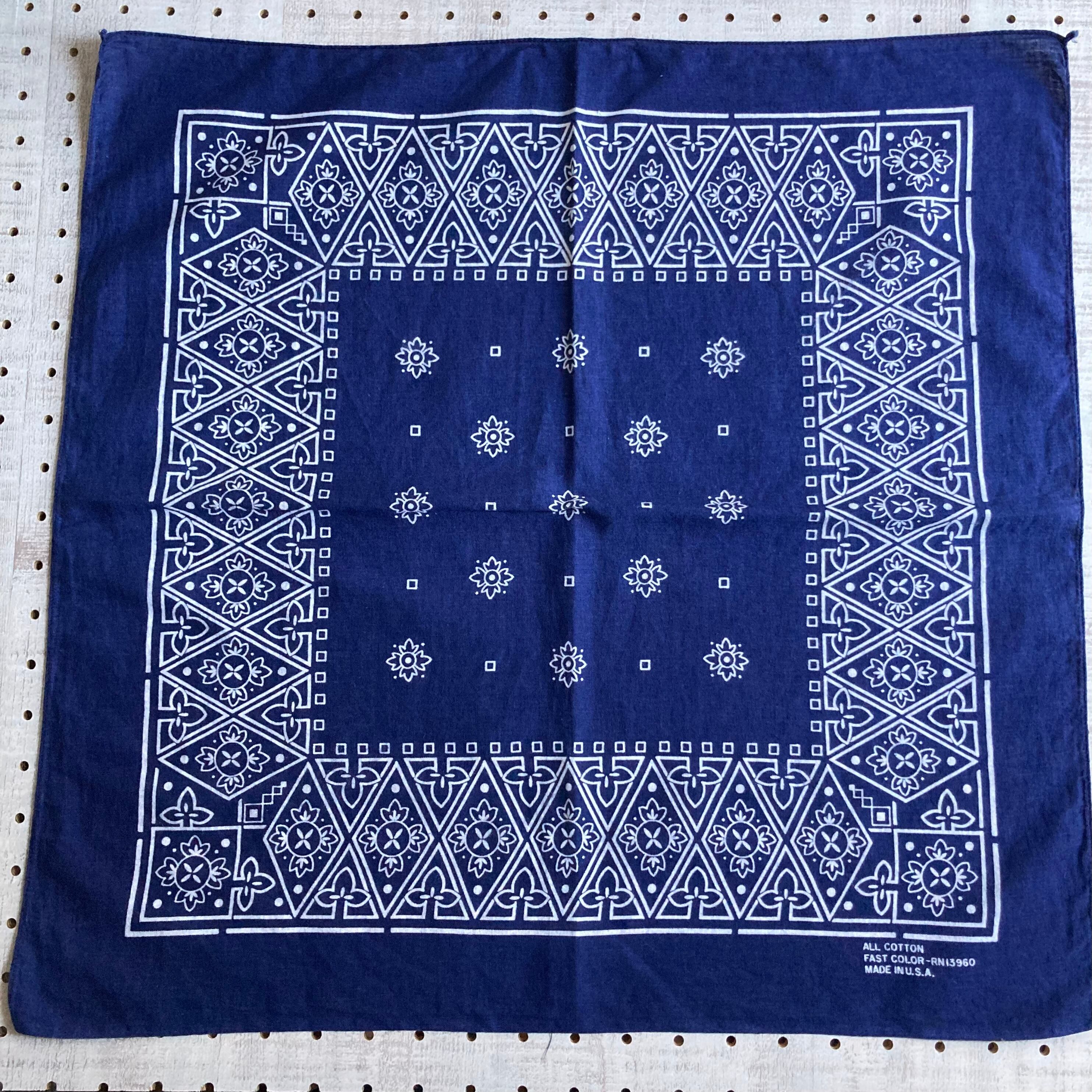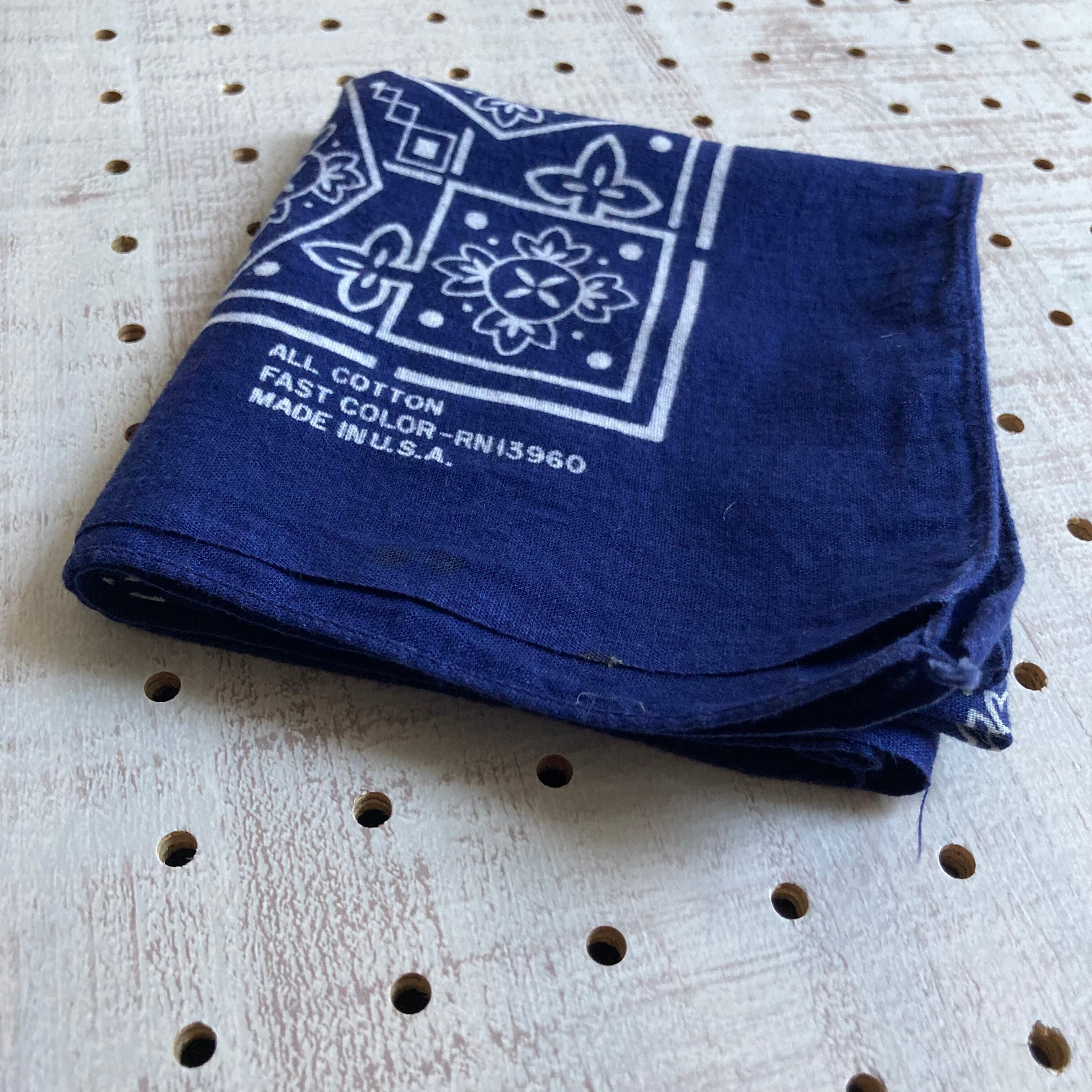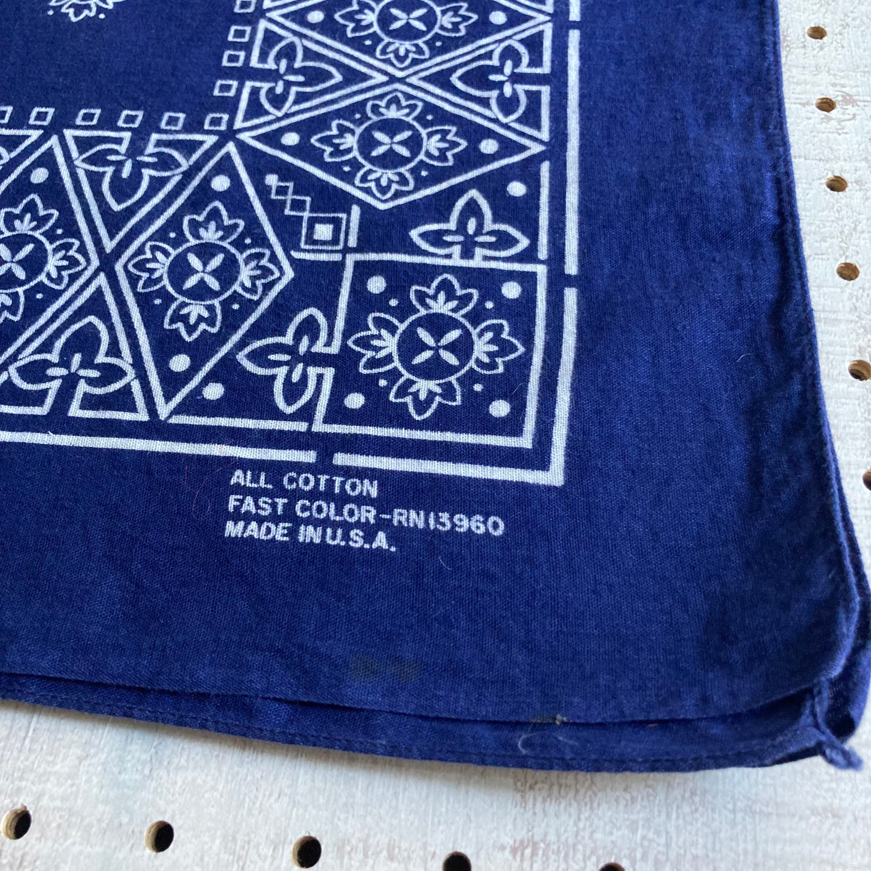 70~80年代 USA製 RN13960 vintage bandanna ☆FAST COLOR ヴィンテージバンダナ ネイビー(A)