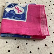 花柄でピンク、こんなかわいいバンダナは他にはあまりありませんね。