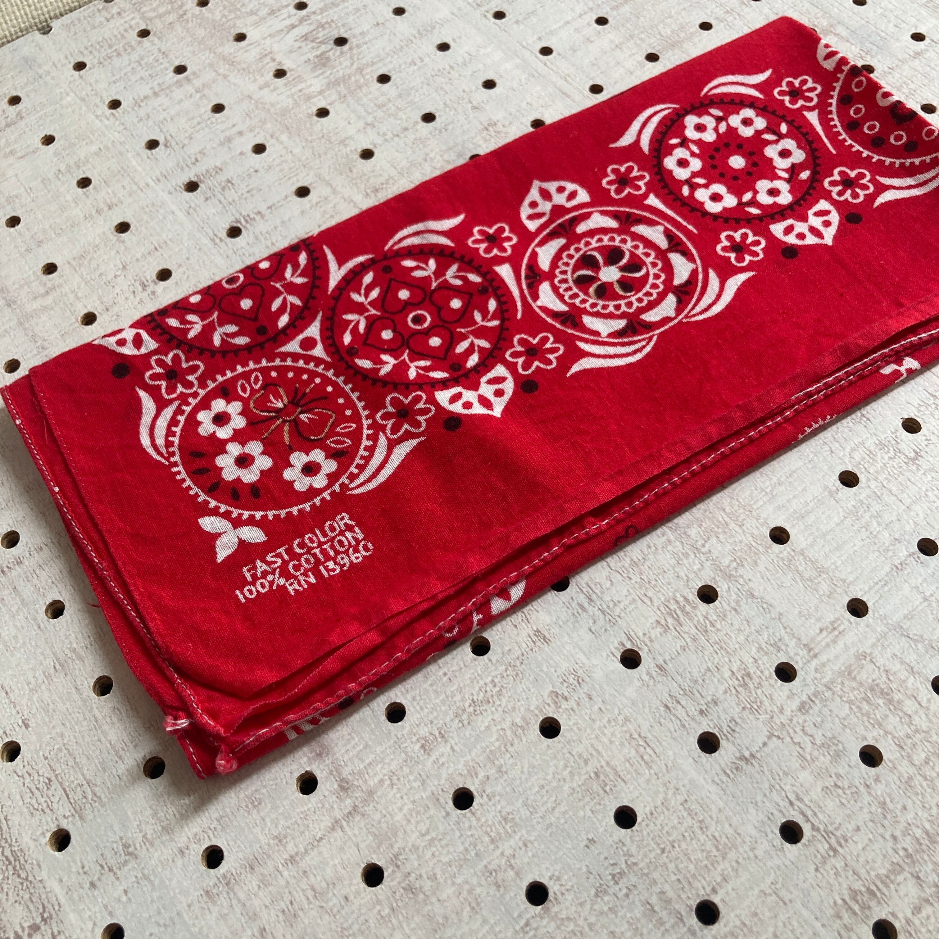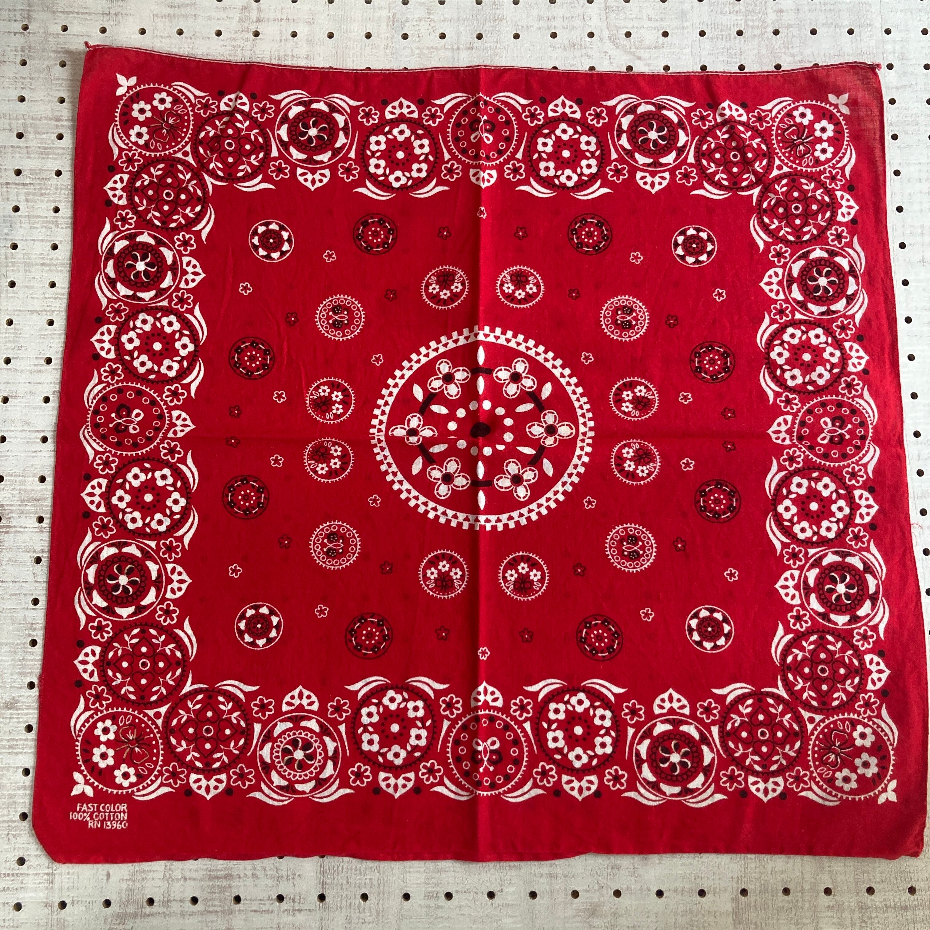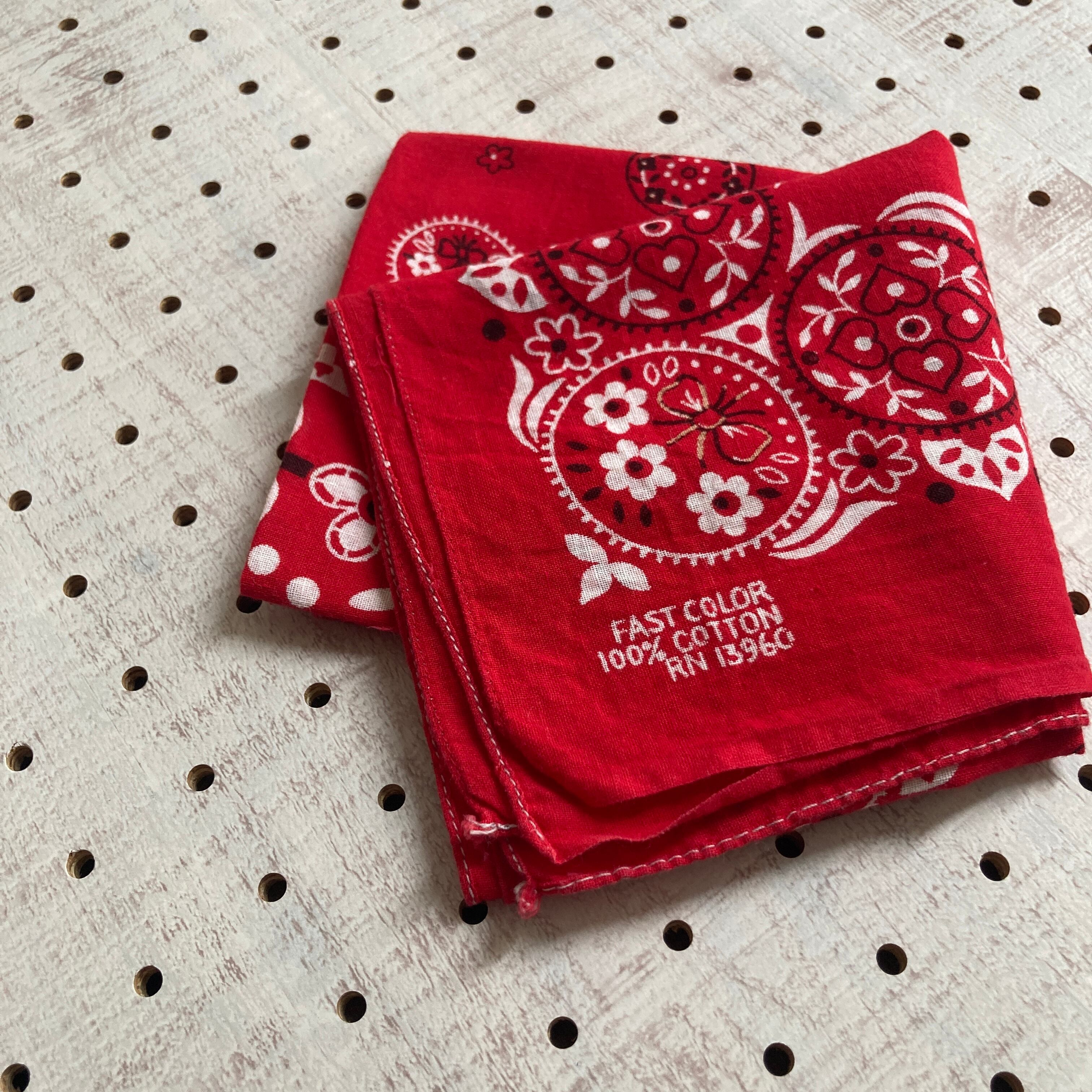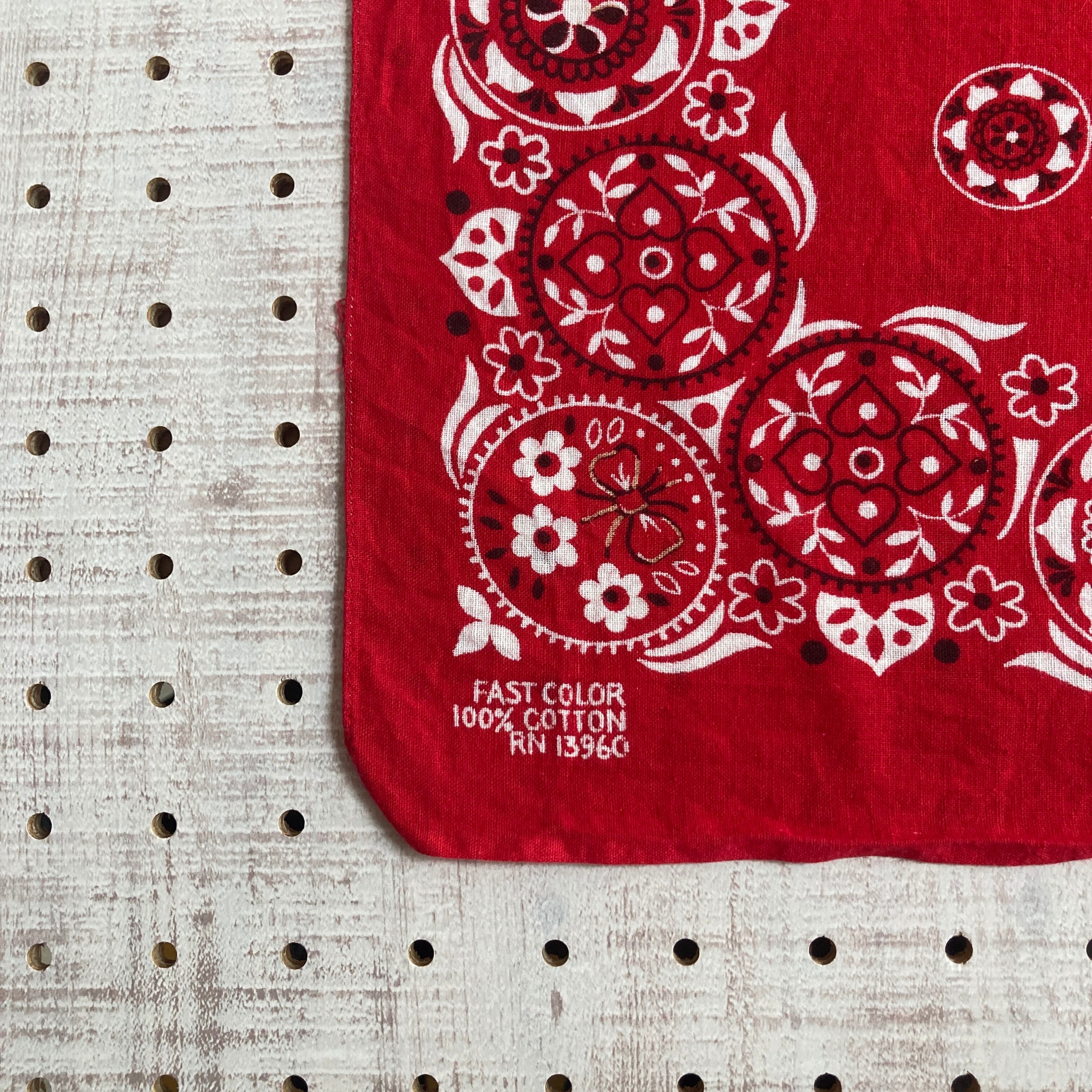 70年代 vintage bandanna RN13960 FASTCOLOR ヴィンテージバンダナ FLOWER RED
