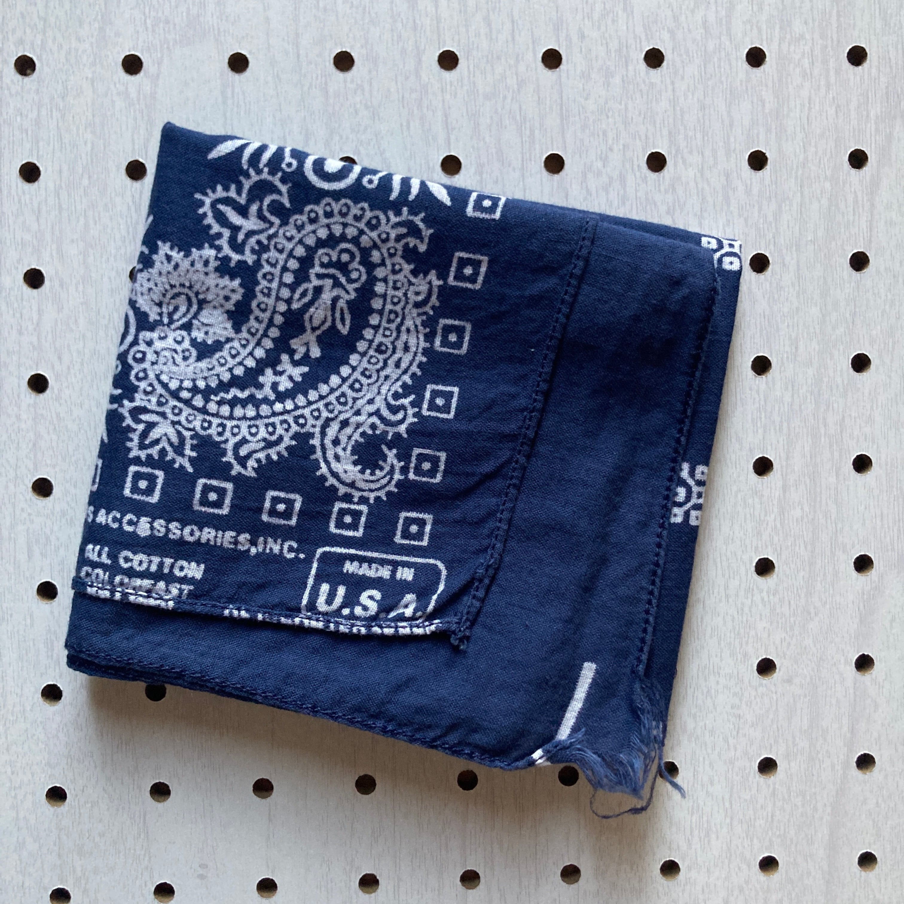 MADE IN USA vintage bandanna RN13960 パリスアクセサリー FASTCOLOR ヴィンテージバンダナ ネイビーペイズリー